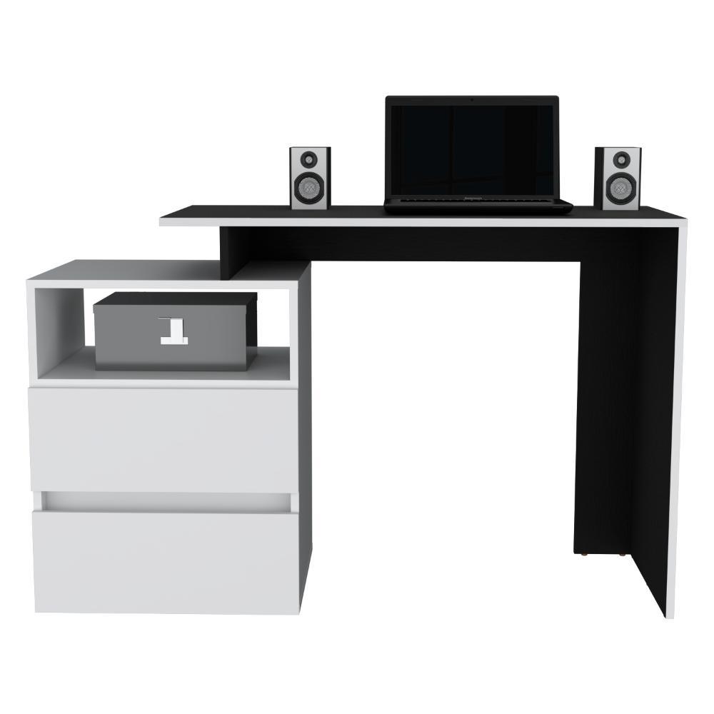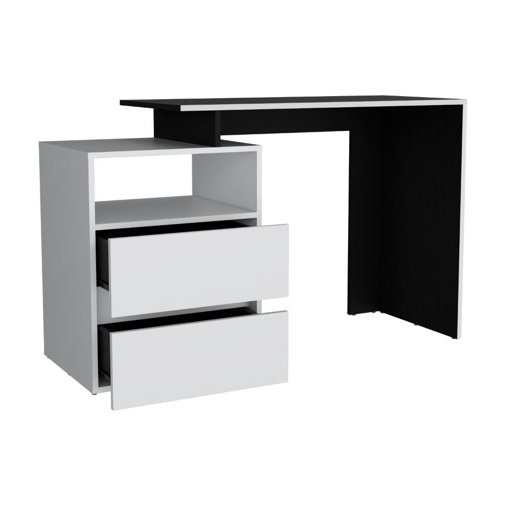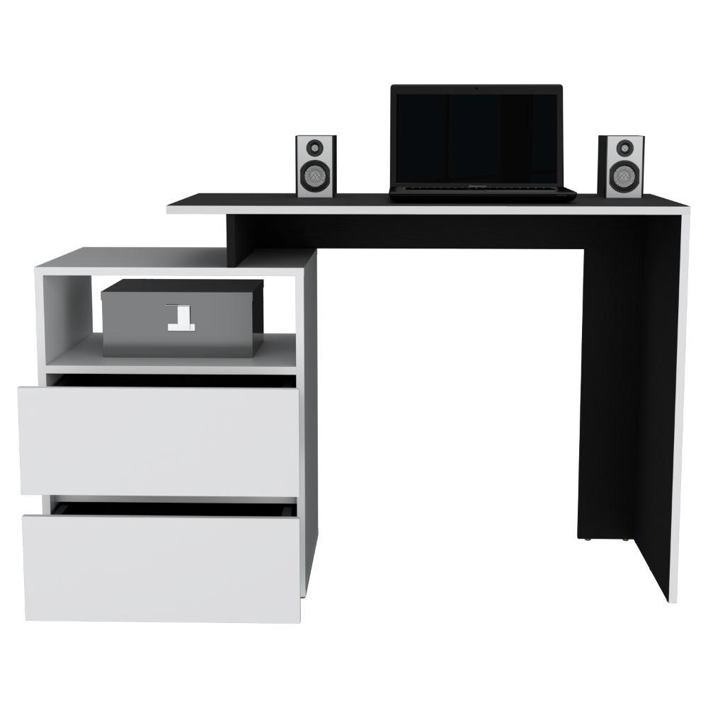 Escritorio Rook, Wengue, con borde blanco y dos cajones
