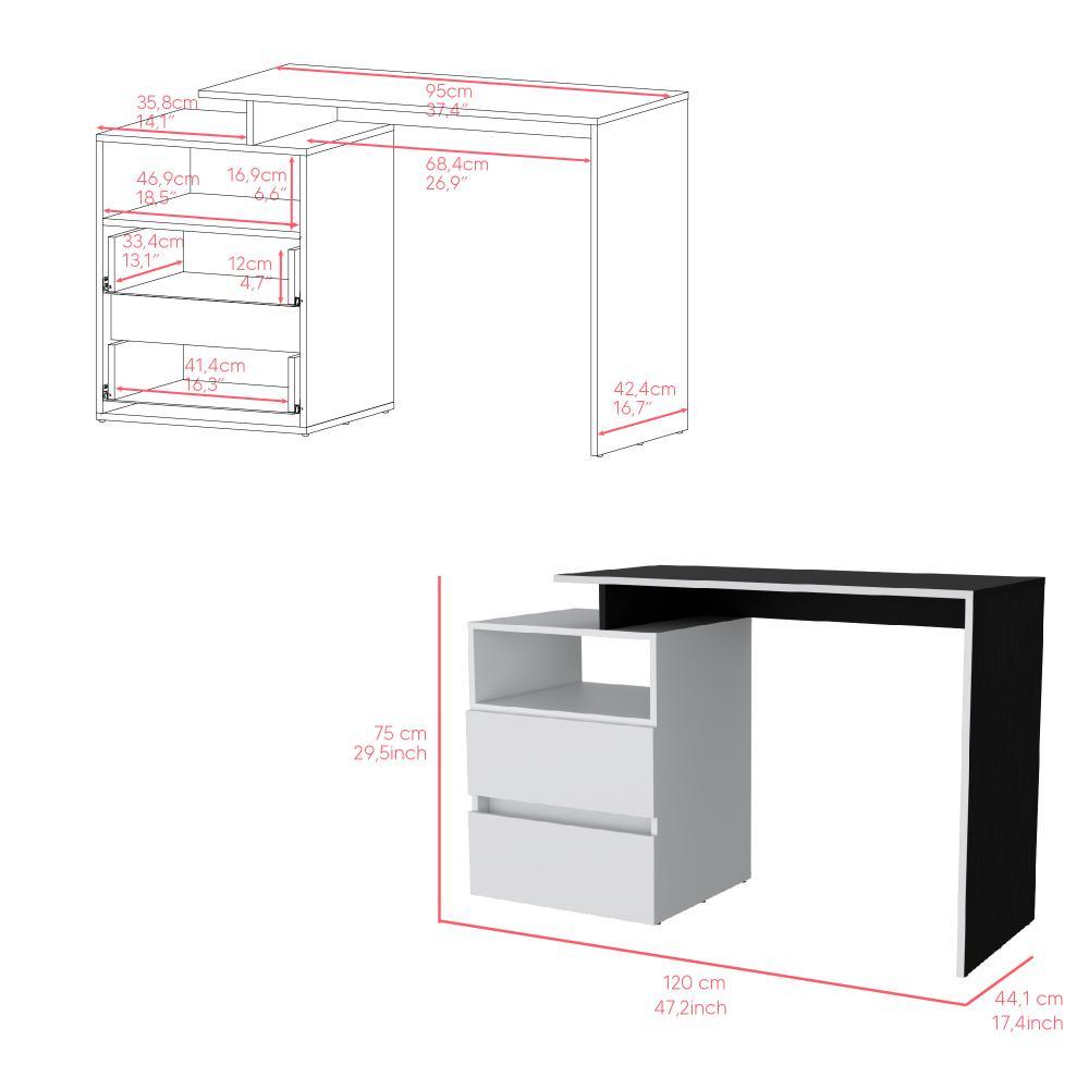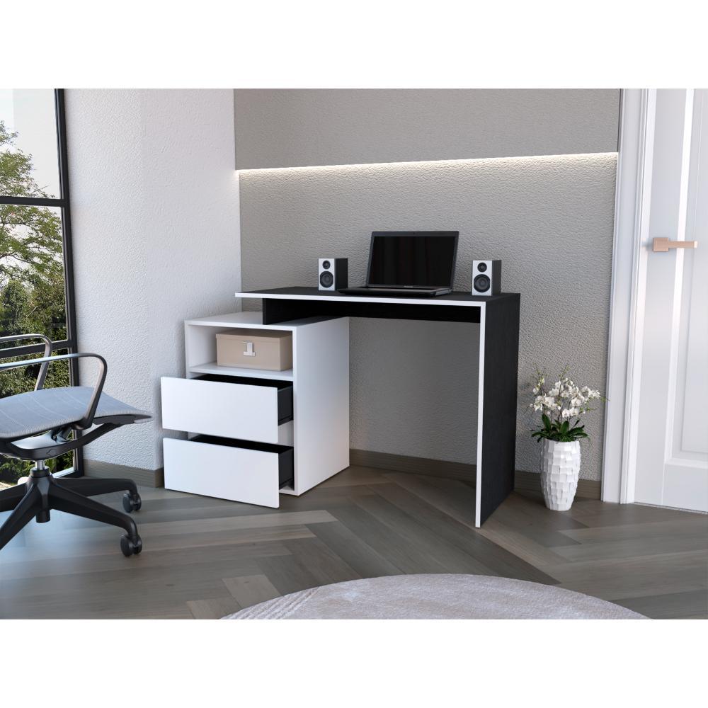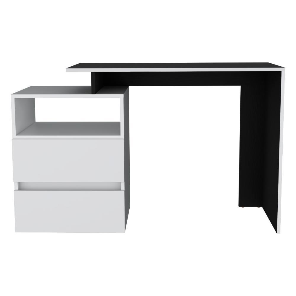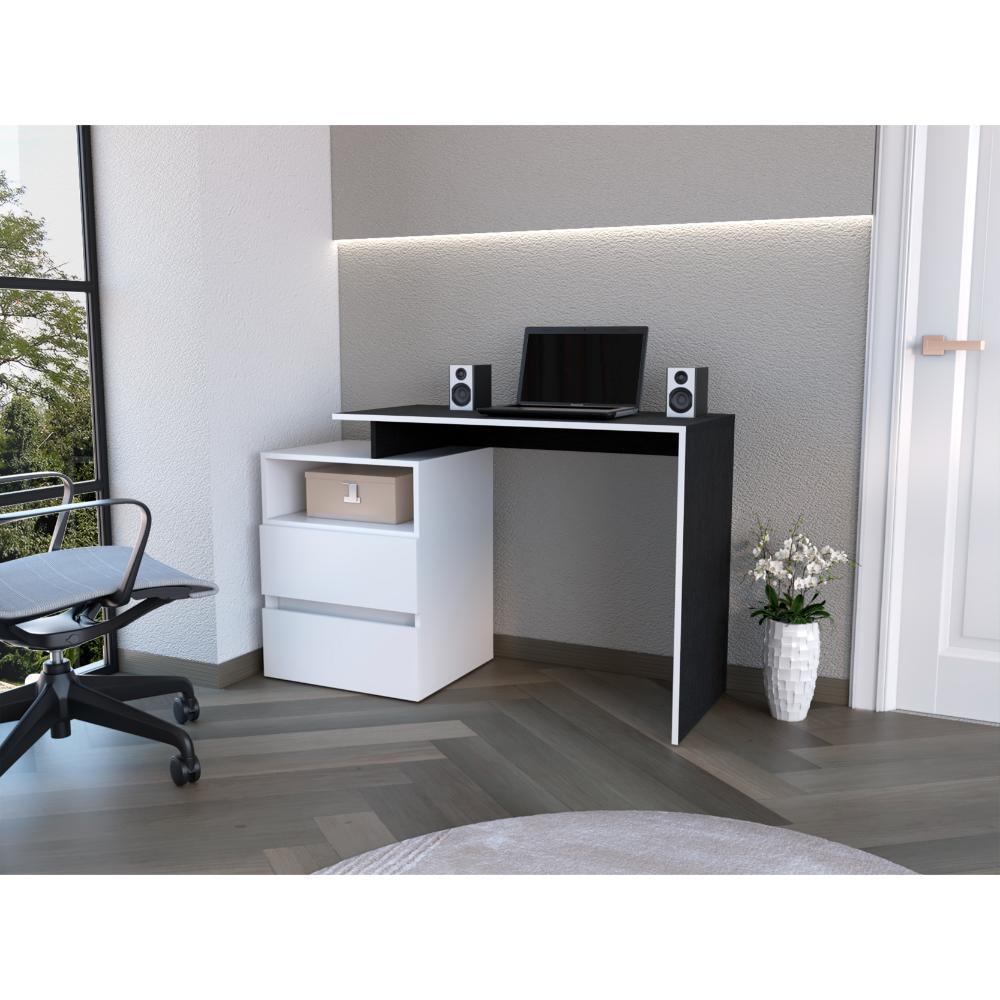Escritorio Rook, Wengue, con borde blanco y dos cajones