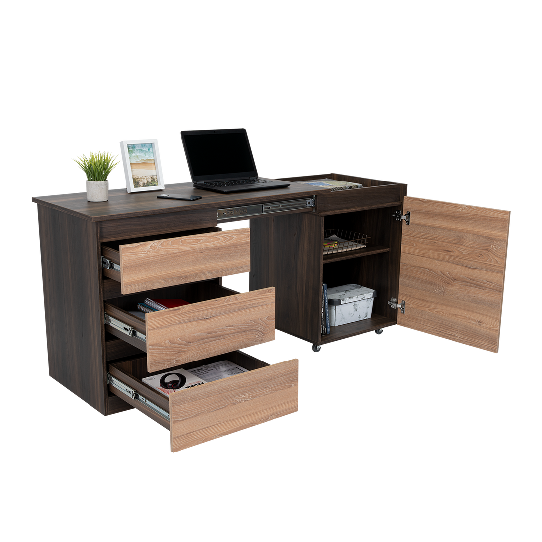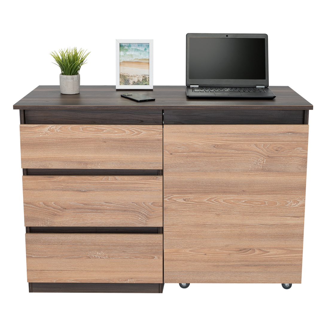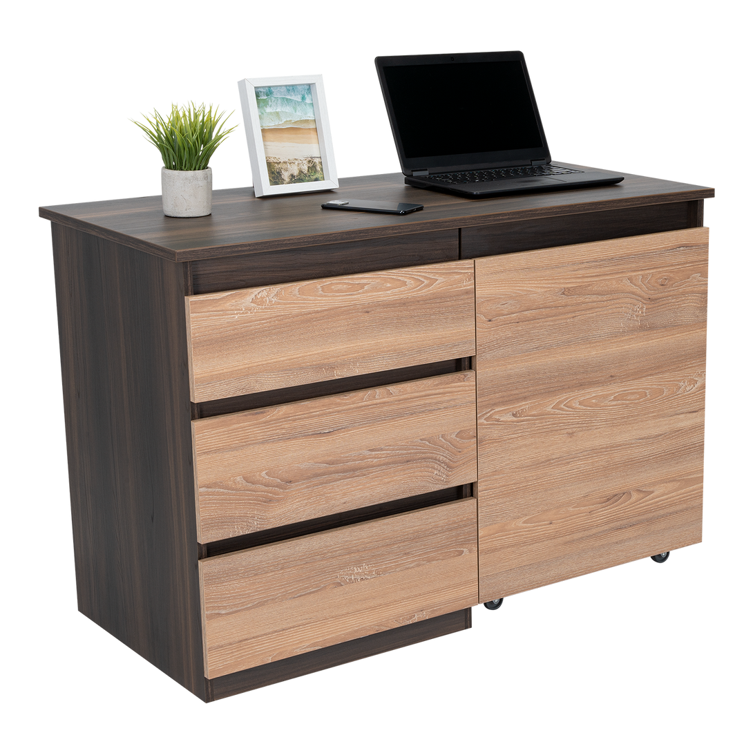 Escritorio Taira, Caoba y Miel, con Tres Cajones Extensibles