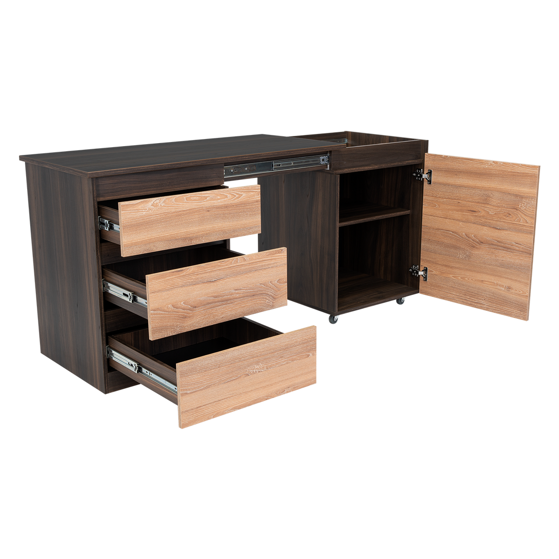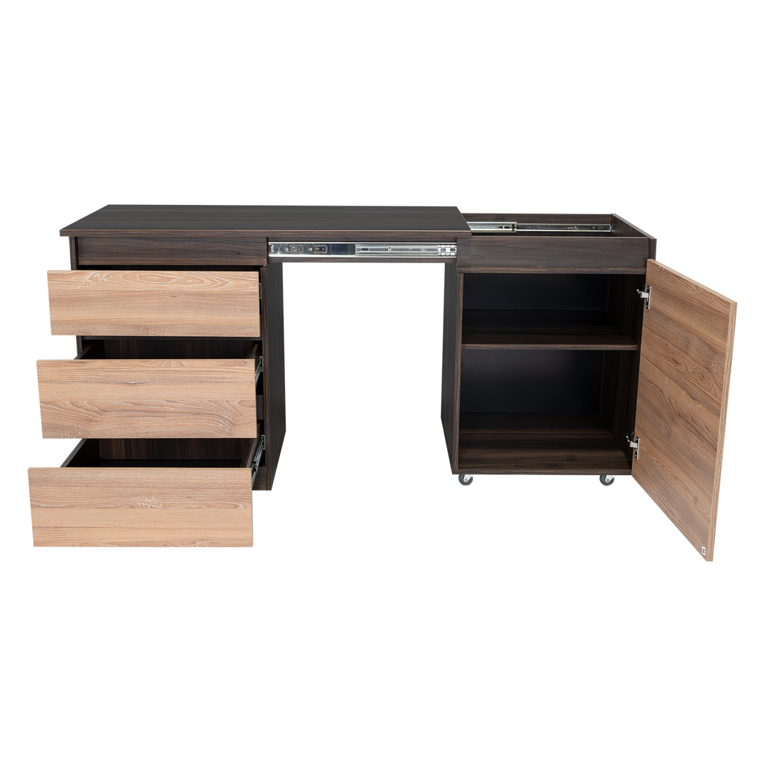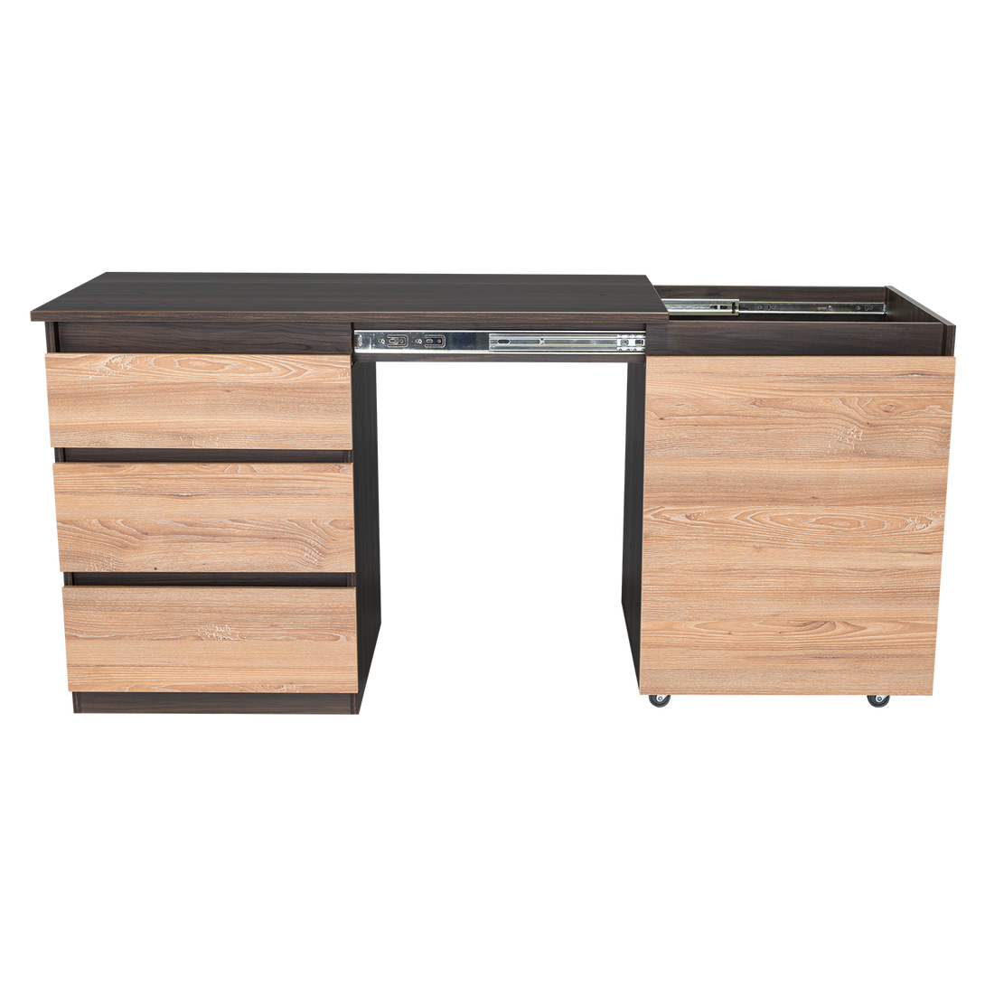 Escritorio Taira, Caoba y Miel, con Tres Cajones Extensibles