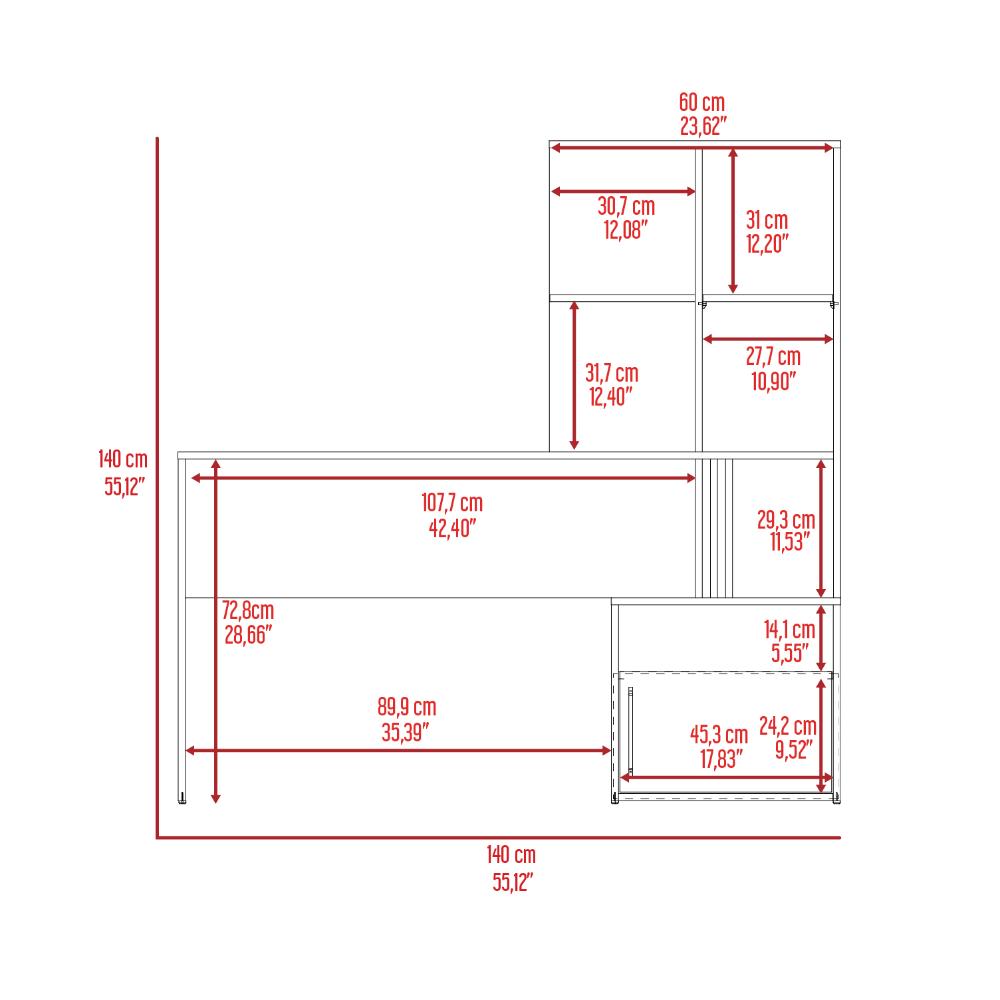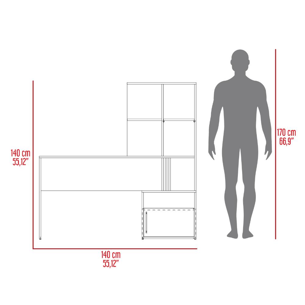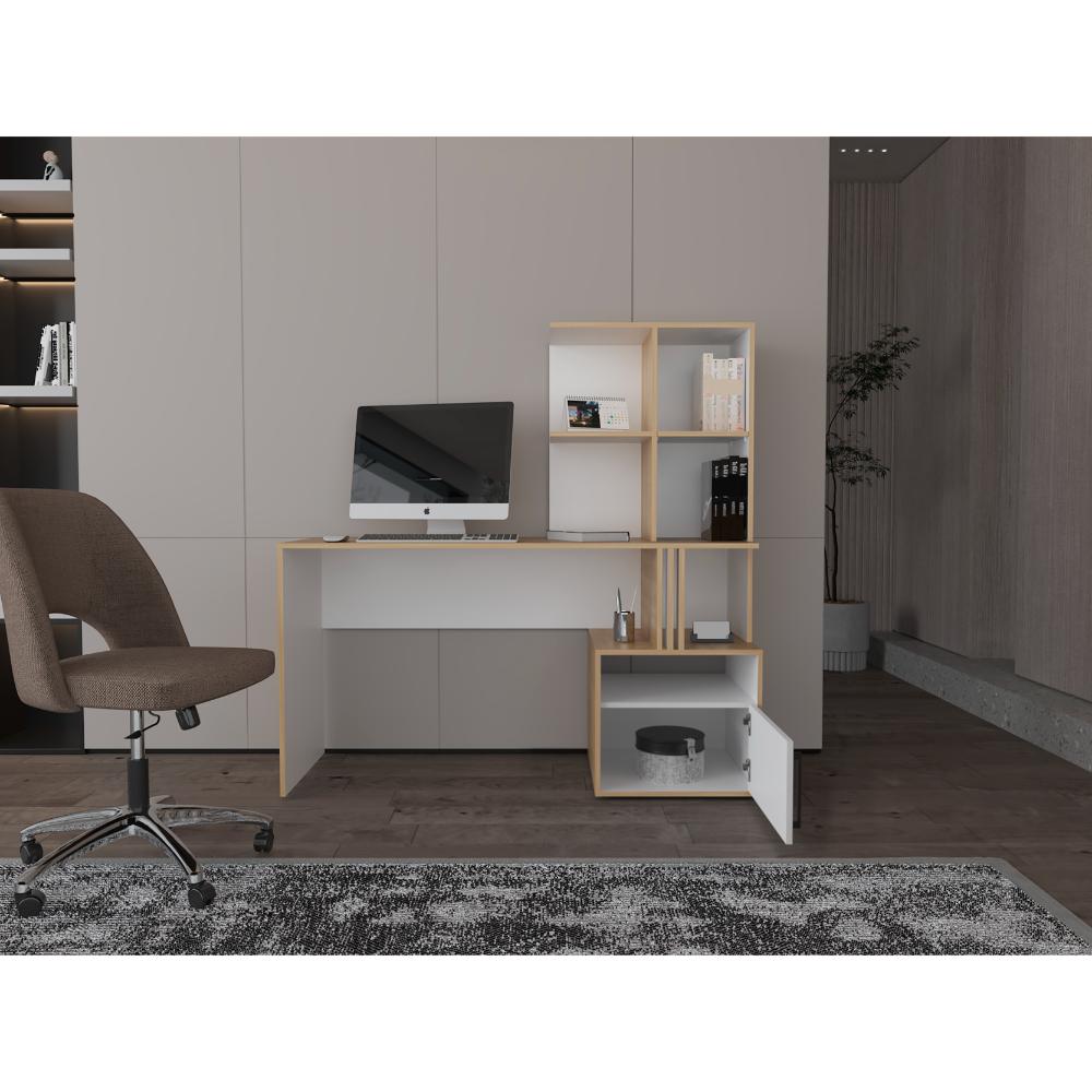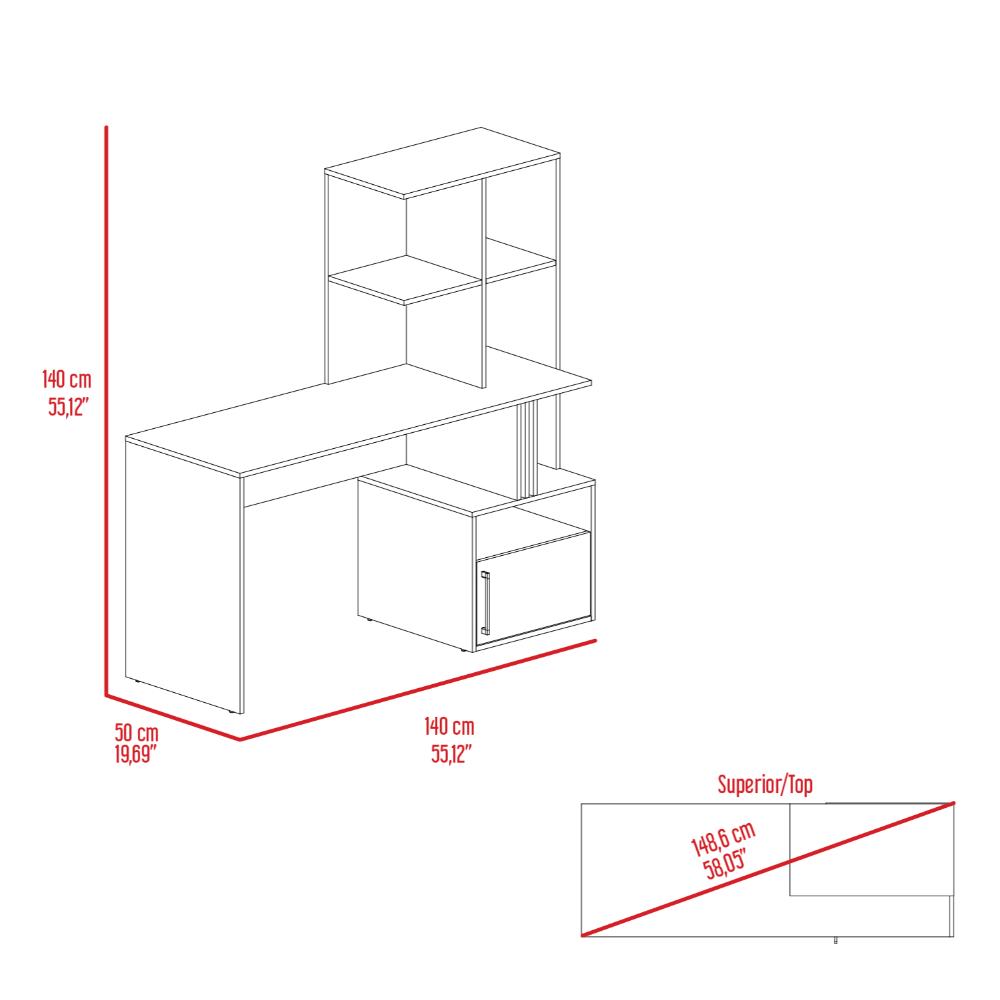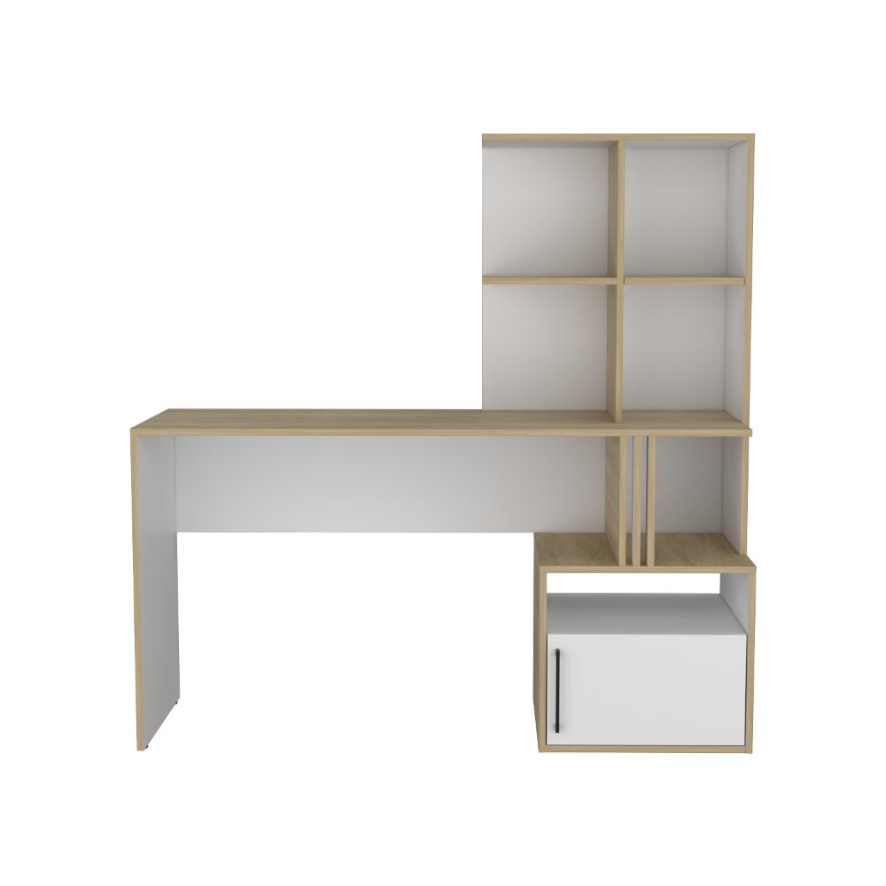 Escritorio Vanez, Fresno y Blanco, multiples entrepaños y superficies para ubicar objetos