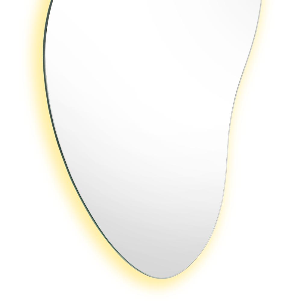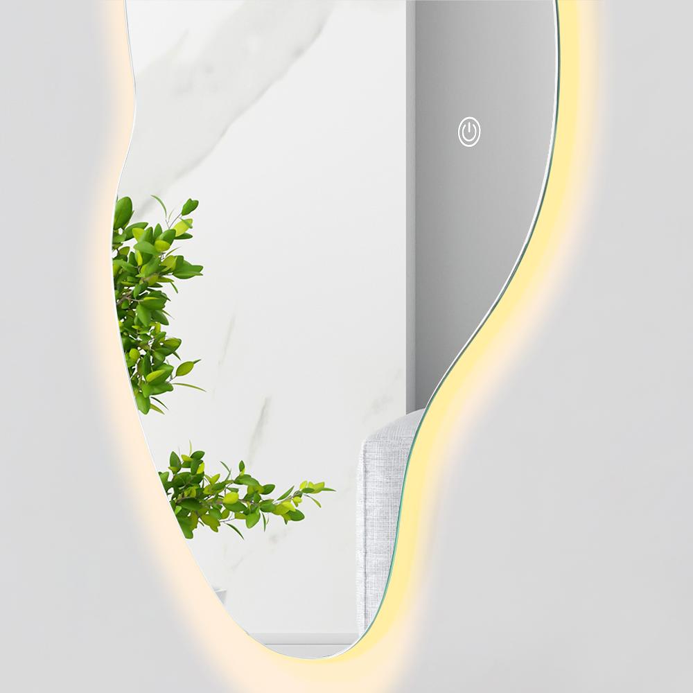 Espejo con iluminacion led y boton para el encendido cuenta con diseño moderno que aporta estilo y amplitud a cualquier espacio. Su forma asimétrica de 100cm de alto x 50cm de ancho lo convierte en una pieza única para dormitorios, salas o recibidores. Elaborado en vidrio de alta calidad, combina elegancia y funcionalidad, ideal para quienes buscan un toque contemporáneo en su hogar