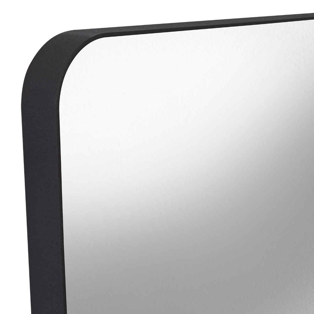 Con bordes redondeados y marco metálico; cuenta con chaflán para su instalación horizontal