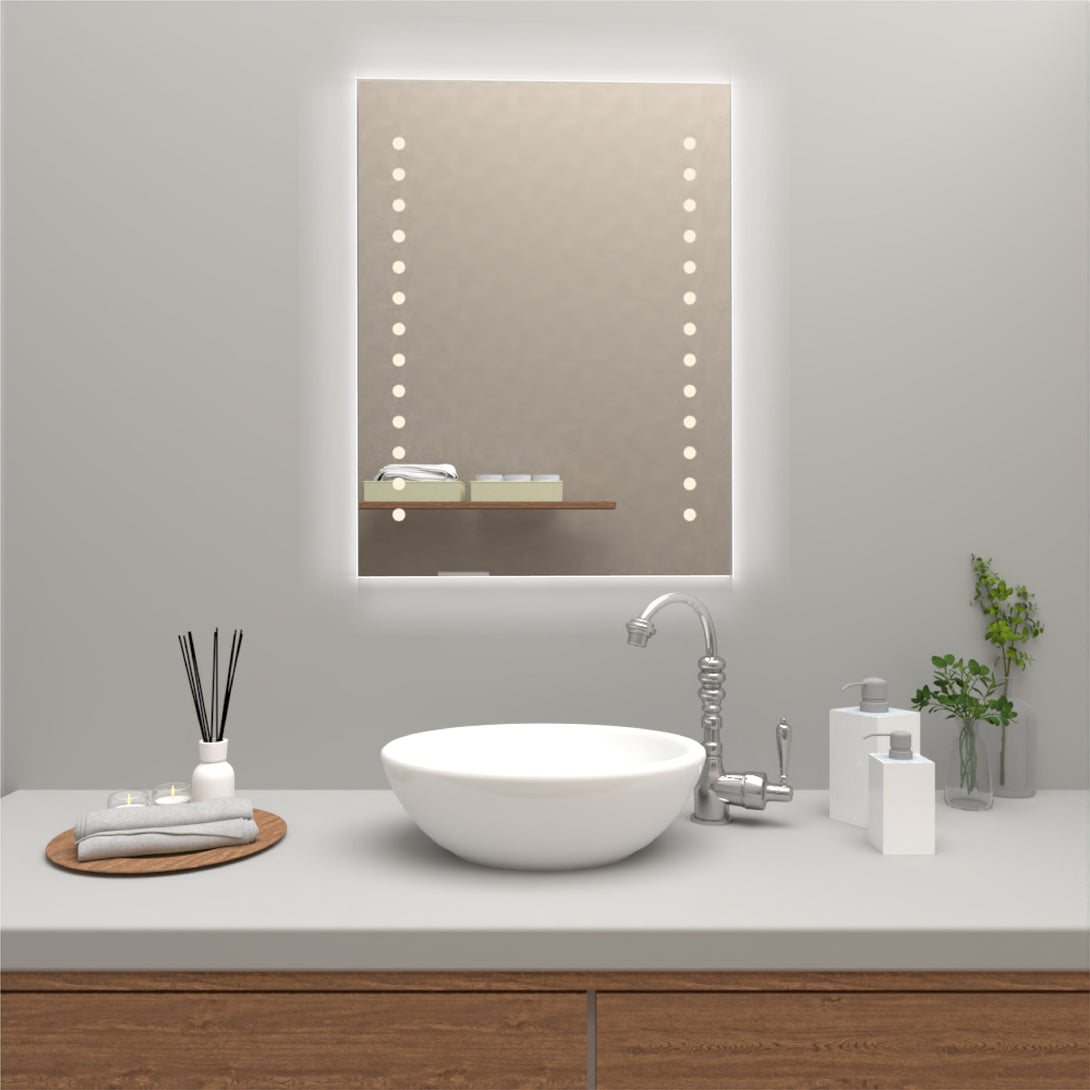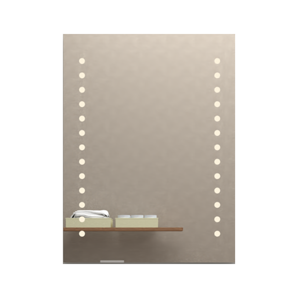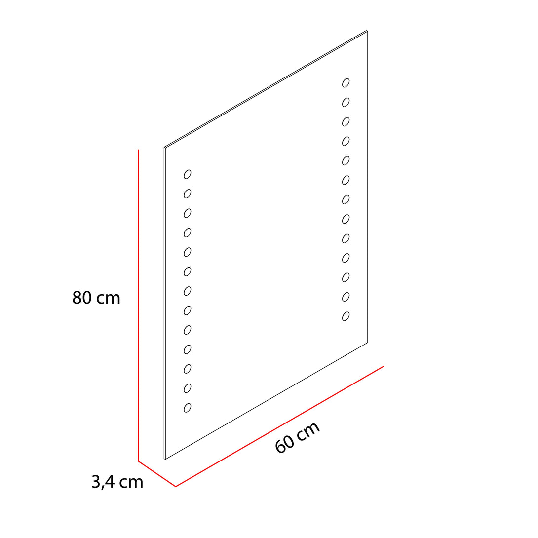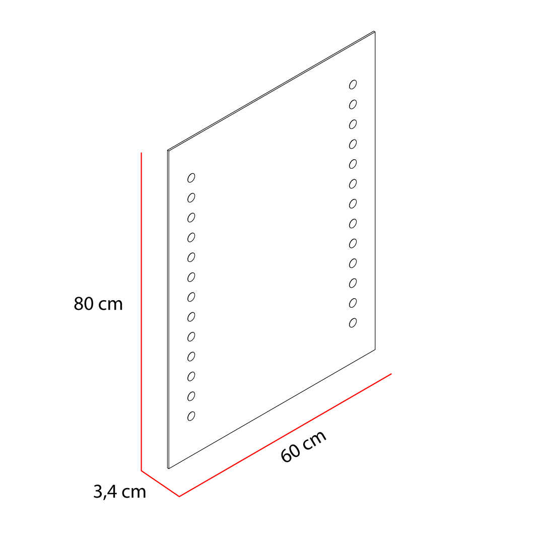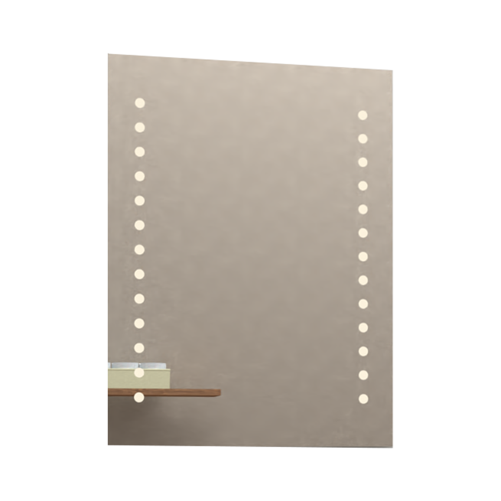 Espejo rectangular con Samblasting y luz led, isntalacion con chaflan