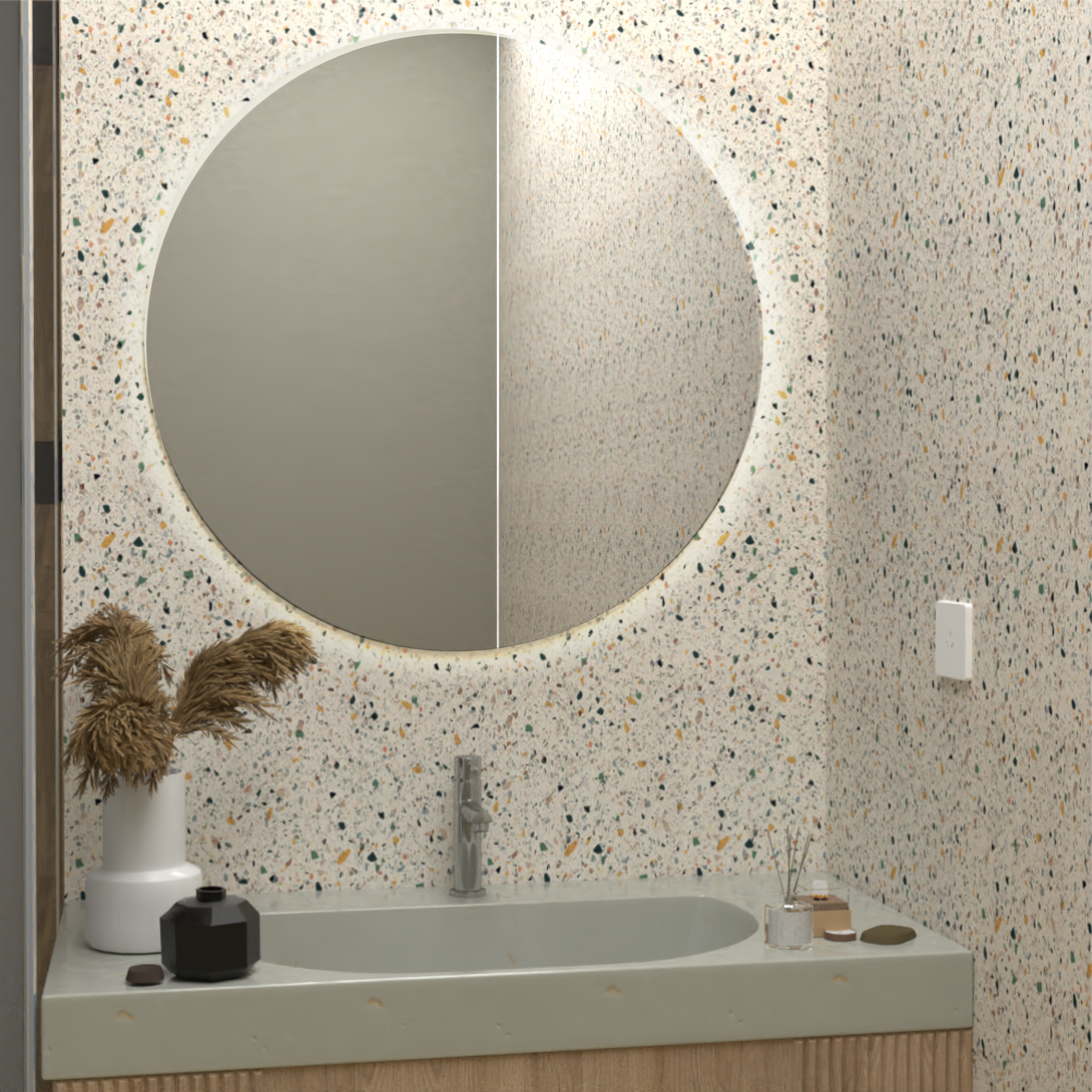 Espejo Redondo con luz led, y ensamble a pared con chaflan