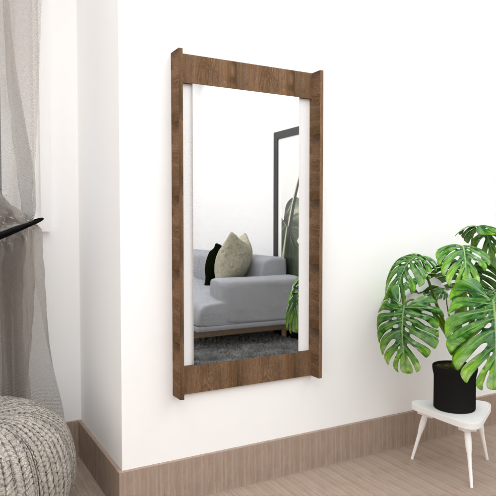Espejo rectangular con estructura externa en madera MPD, En madera clara y oscura