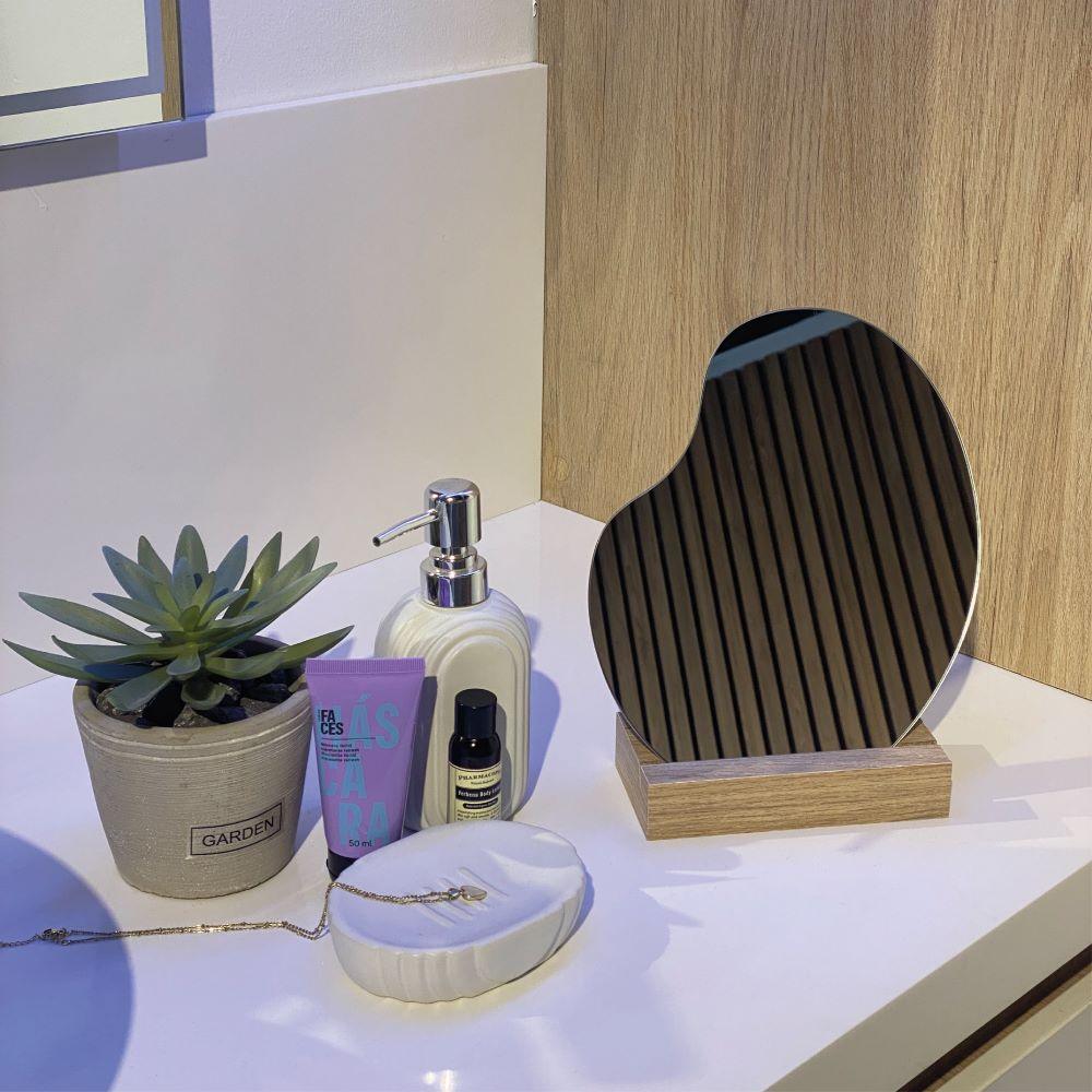 Espejo Tocador Bean, Beige, Diseño Moderno