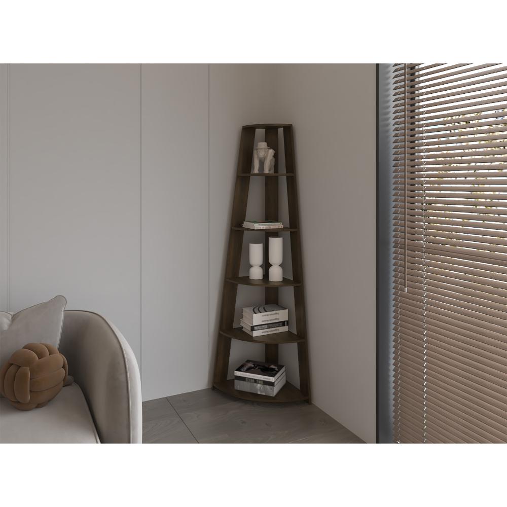 Estanteria Esquinero Delverg, Nogal Europeo, con entrepaños para ubicar artículos decorativos