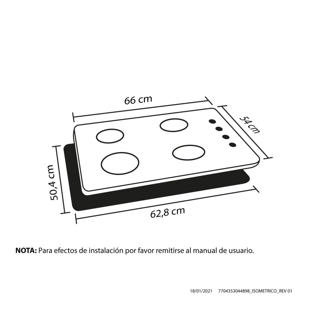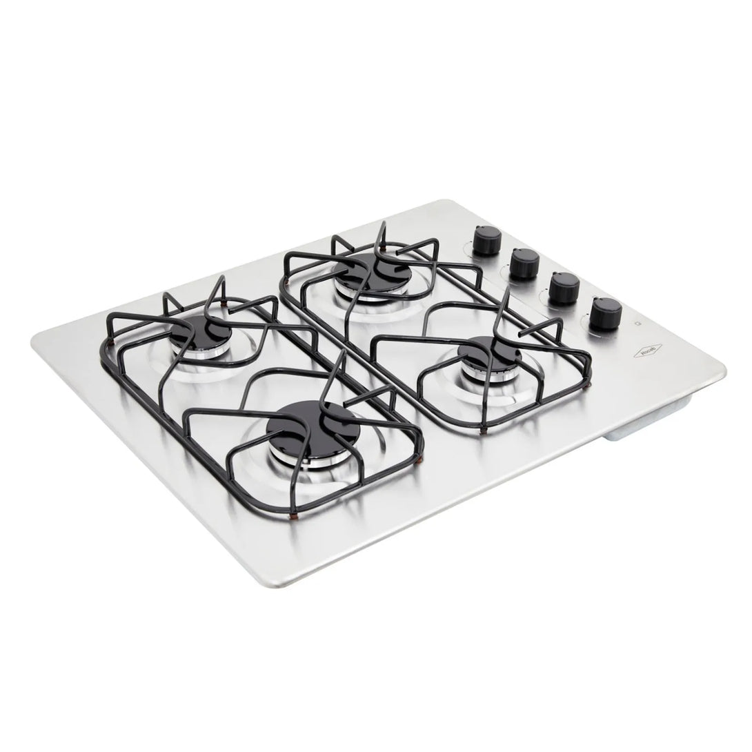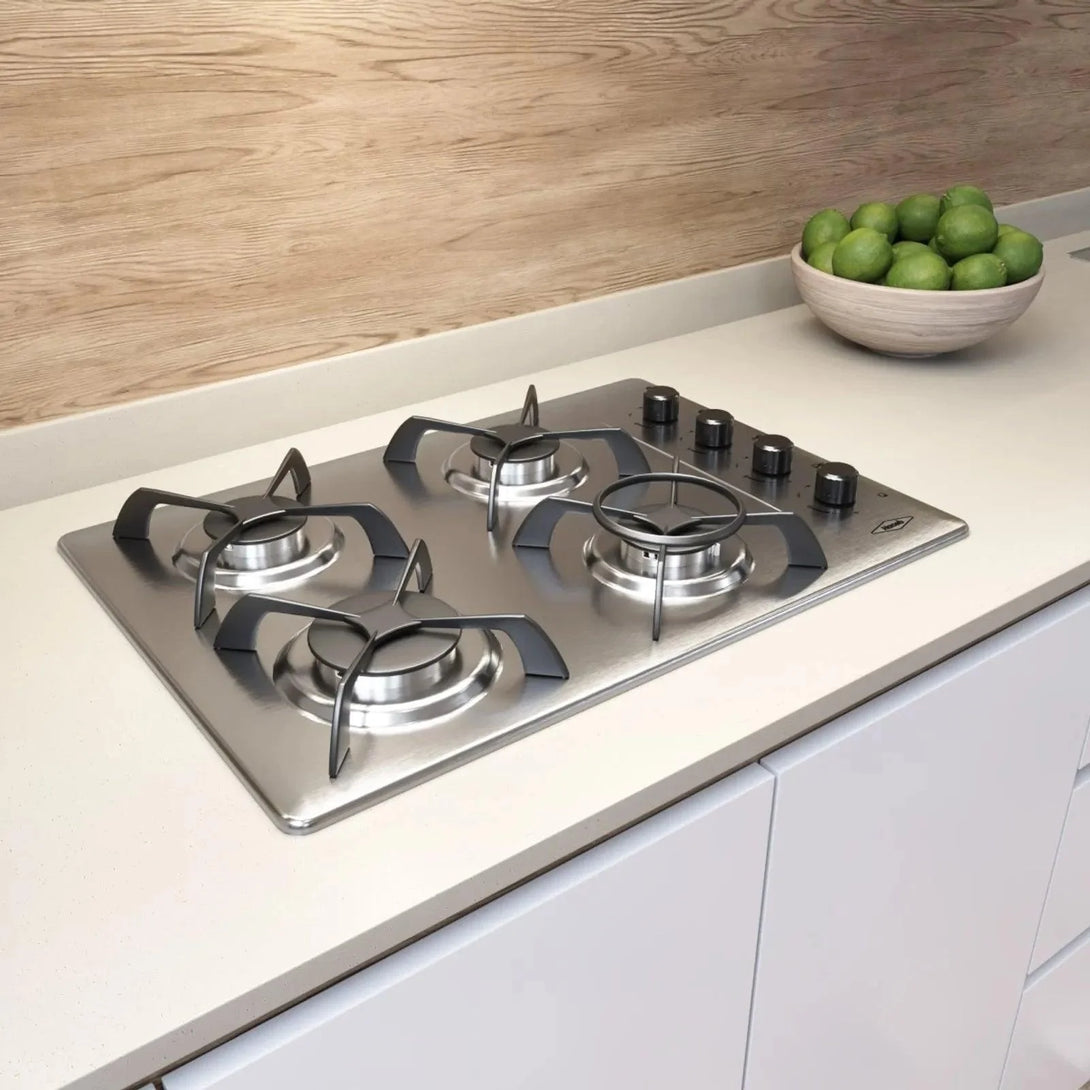Estufa de empotrar a gas en acero inoxidable de 66 cm de ancho. Cuenta con 4 fogones en diferentes tamaños que se acomodan a los diámetros de tus ollas y pesos de tus preparaciones y 1 fogón rápido 35% más potente que agiliza los tiempos de cocción . Las parrillas cuentan con 8 puntos de apoyo óptimos por recipiente para más estabilidad y seguridad al cocinar. Es de muy fácil limpieza gracias a las perillas removibles. Enciende solo con girar las perillas.