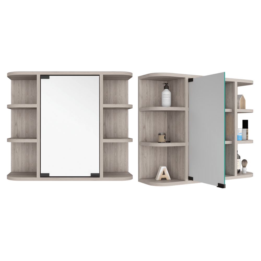 Gabinete de Baño Delio, Humo, con Una Puerta de Espejo Abatible y Seis Entrepaños ZF X2