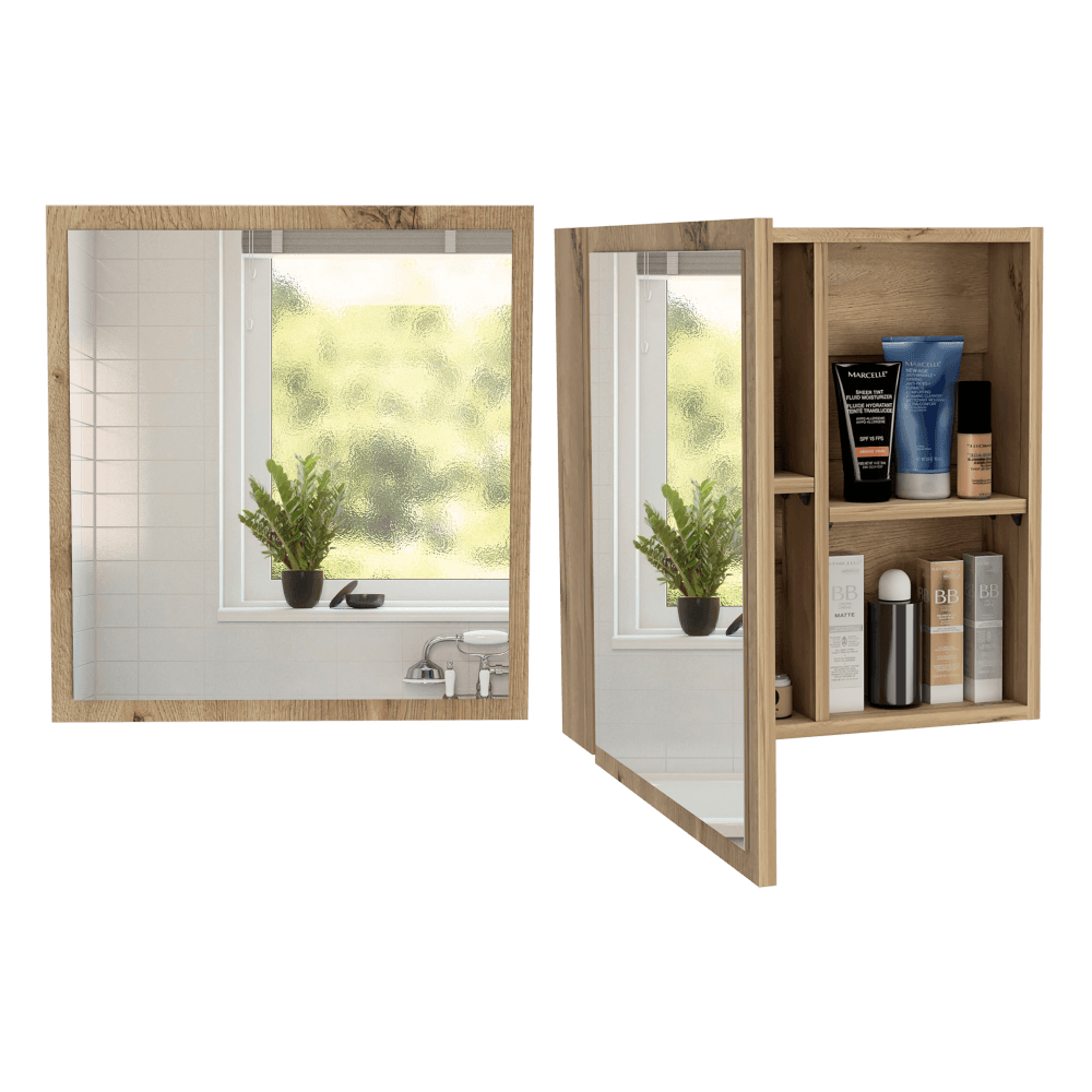 Gabinete de Baño Luma, Café Claro, con Puerta Espejo y Dos Entrepaños Para Ubicar Múltiples Objetos ZF X2