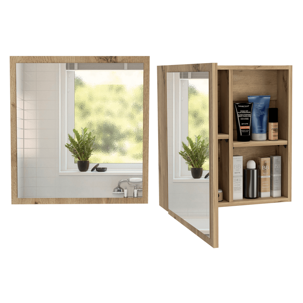 Gabinete de Baño Luma, Café Claro, con Puerta Espejo y Entrepaños Para Ubicar Múltiples Objetos X2