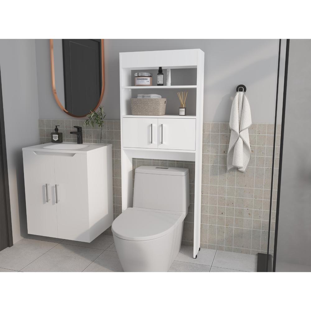 Gabinete de Baño Oporto, Blanco Kronos, Ahorrador de Espacio