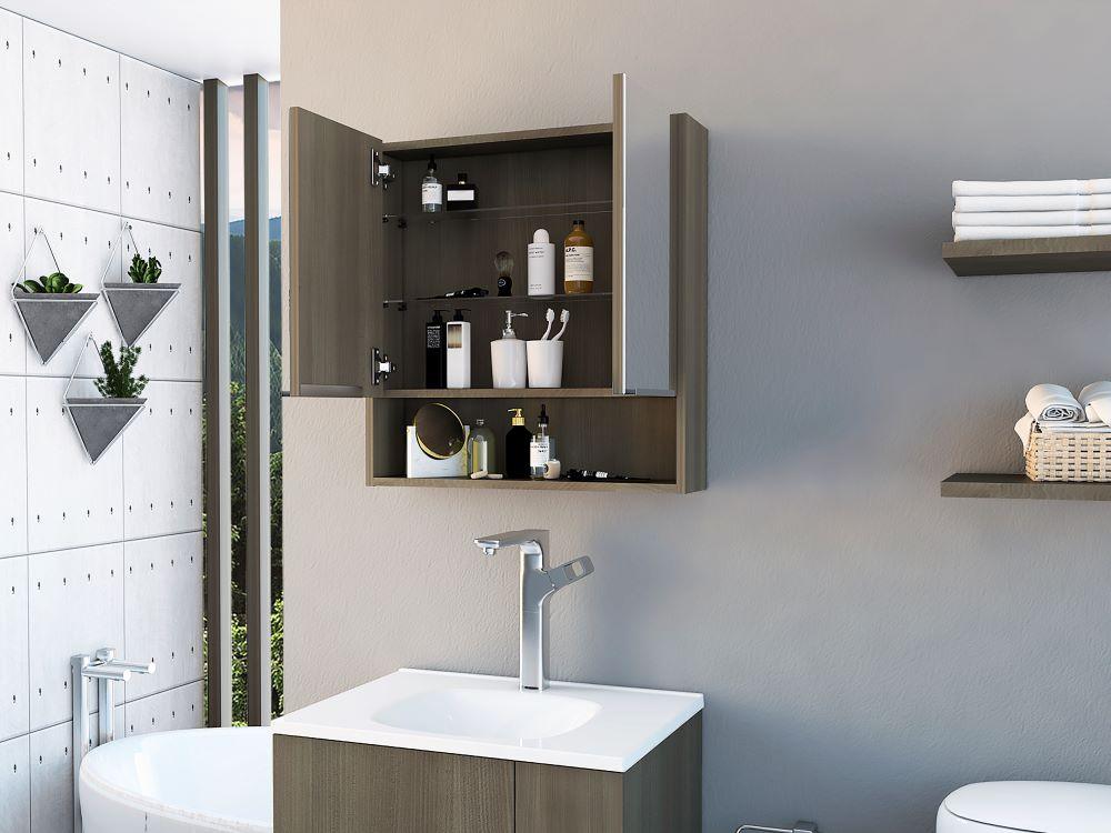 Gabinete de Baño, incluye espejo y entrepaños para guardar objetos de aseo.