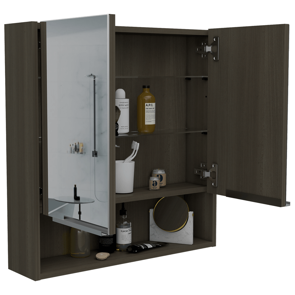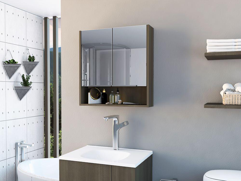 Gabinete de Baño Rawana, Canela, Incluye Espejo y Entrepaños Para Guardar Objetos de Aseo
