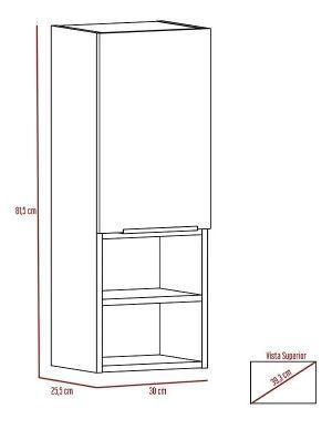 Gabinete, con 3 entrepaños y una puerta abatible.