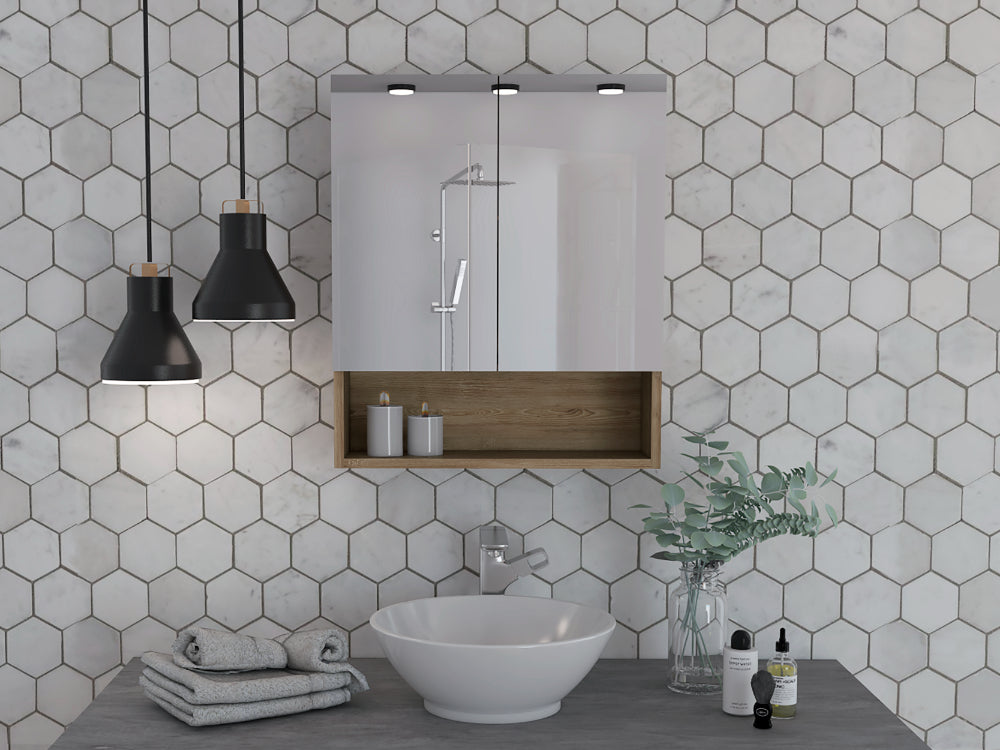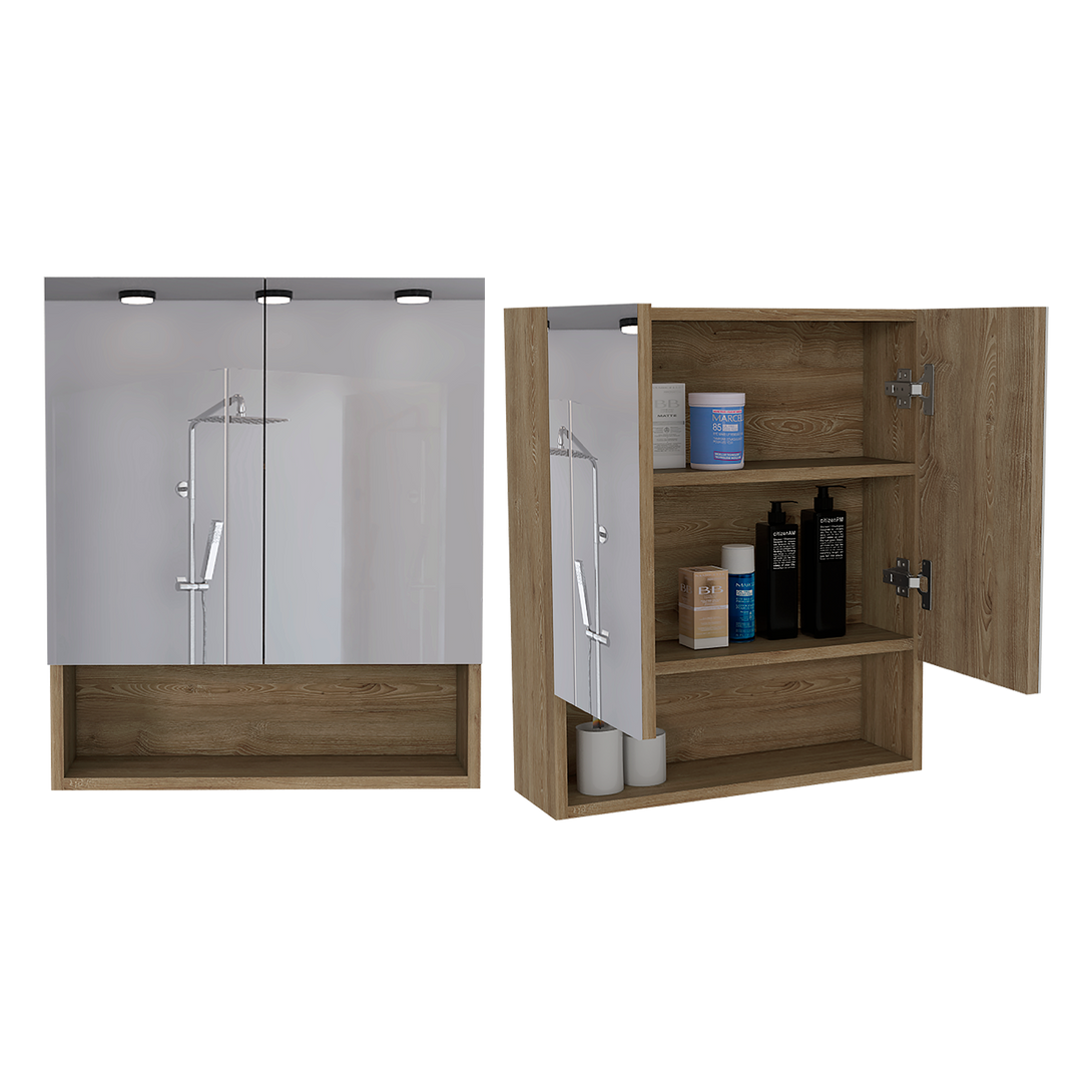 Gabinete de Baño Wanda, Miel, con dos puertas y tres entrepaños X2