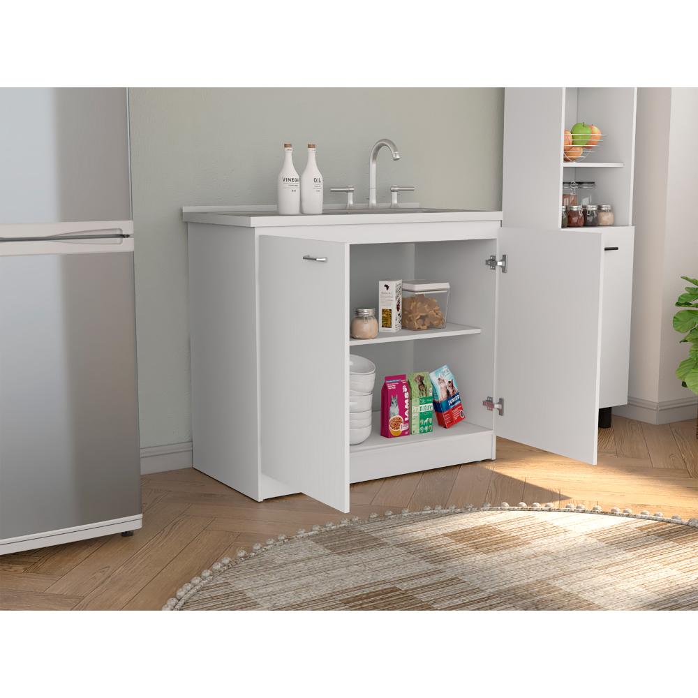 Gabinete Inferior Cantabria, Blanco, Ideal Para Espacio Reducidos, con mesón derecho ZF