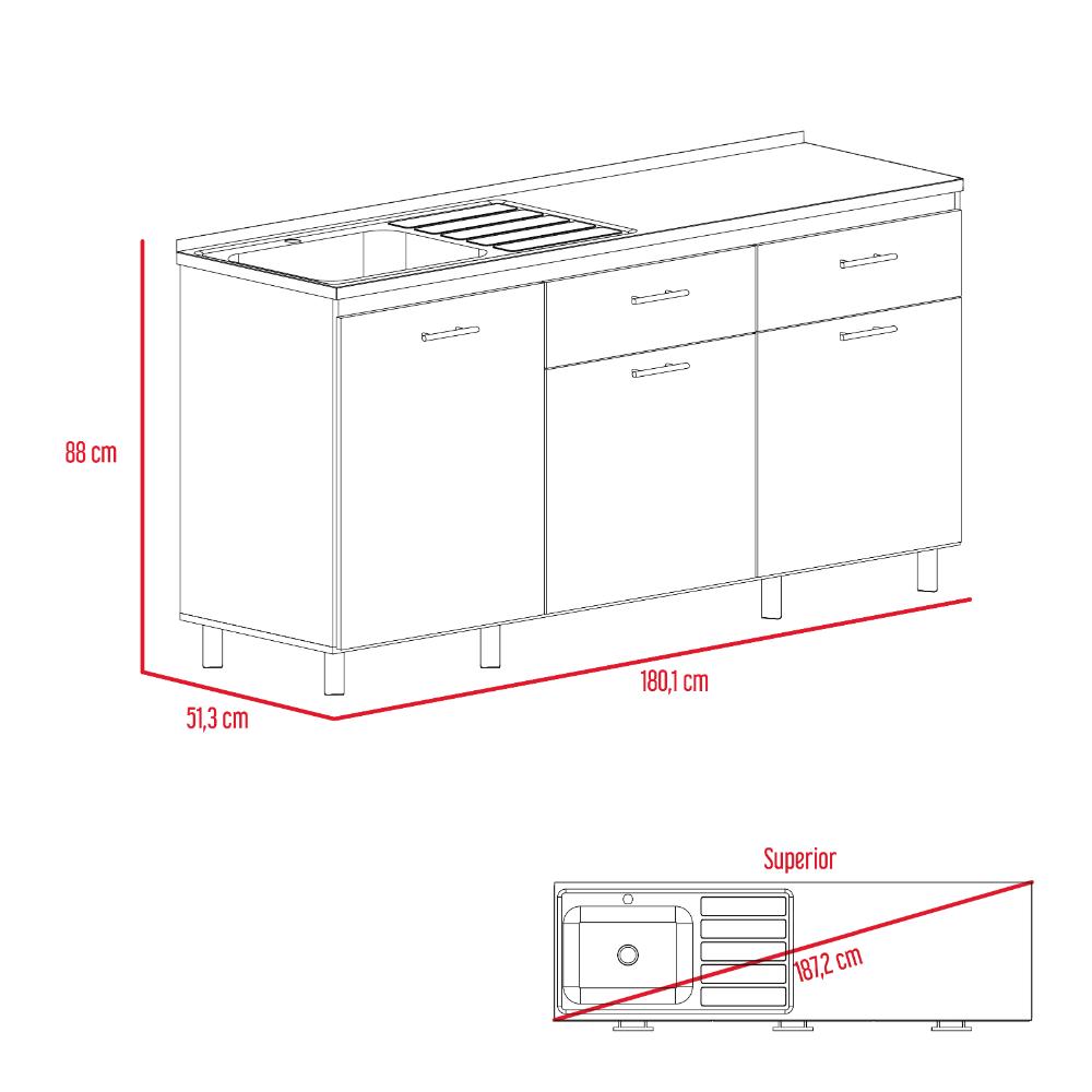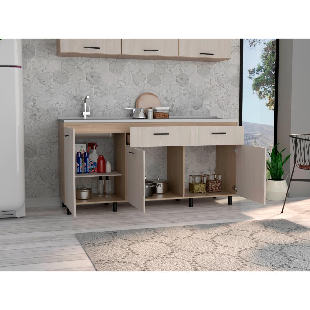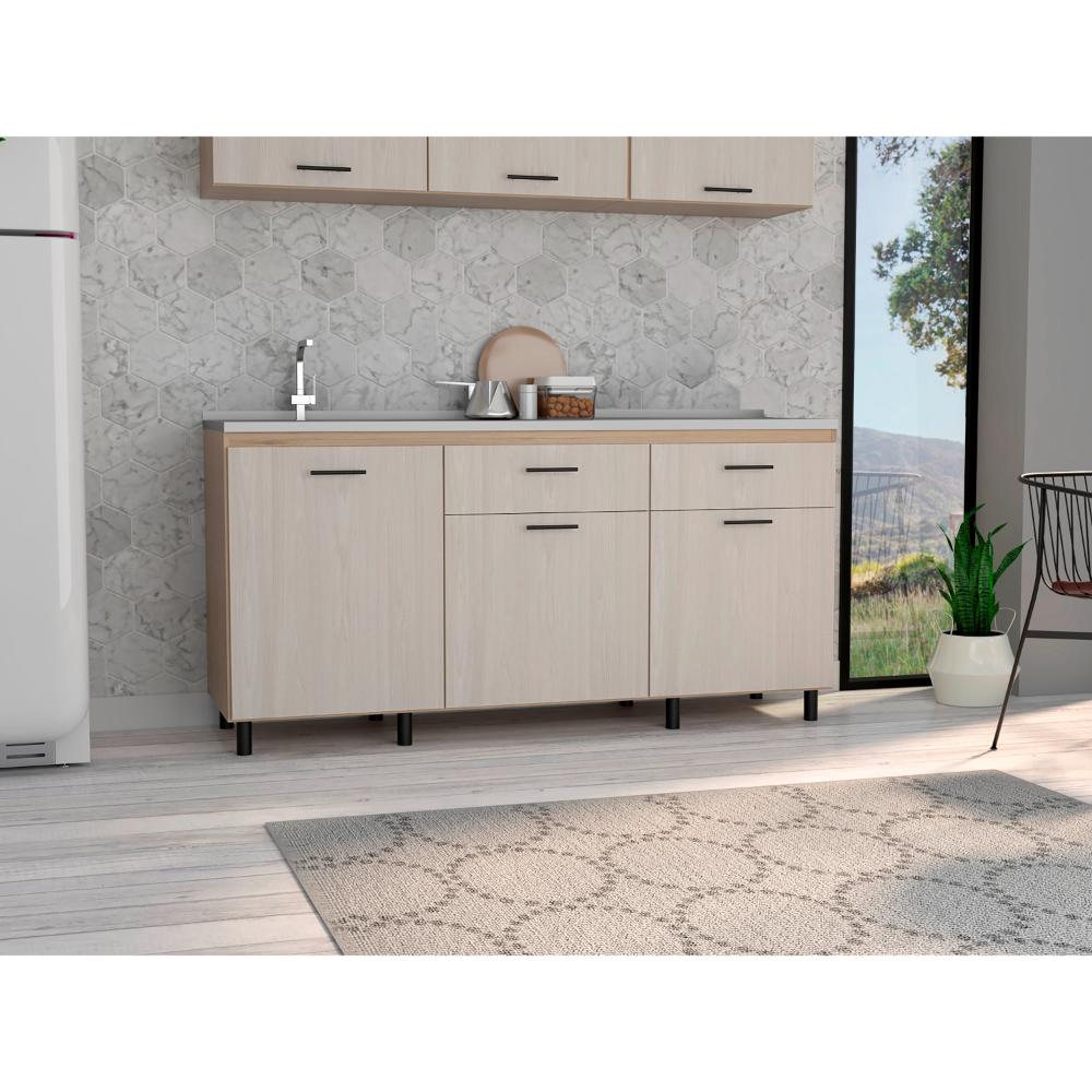 Gabinete Inferior Kazán 180, Beige y Humo, con Gran Capacidad de Almacenamiento