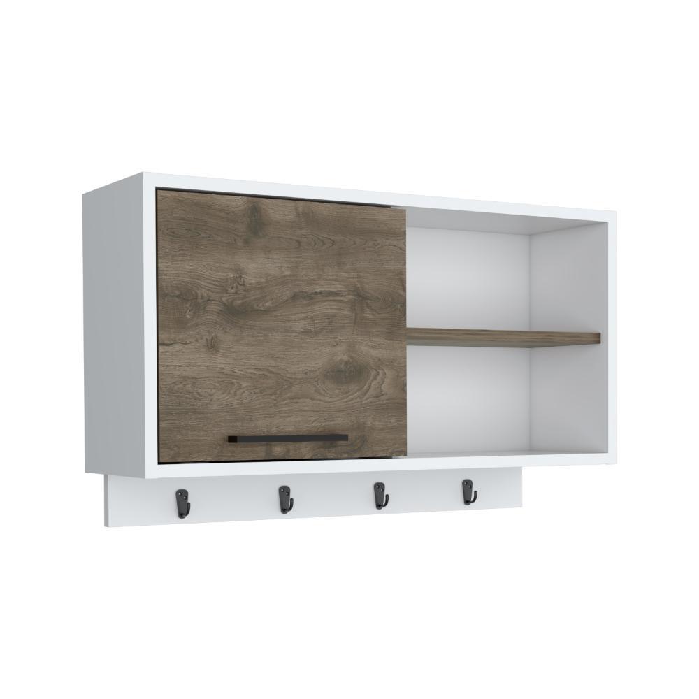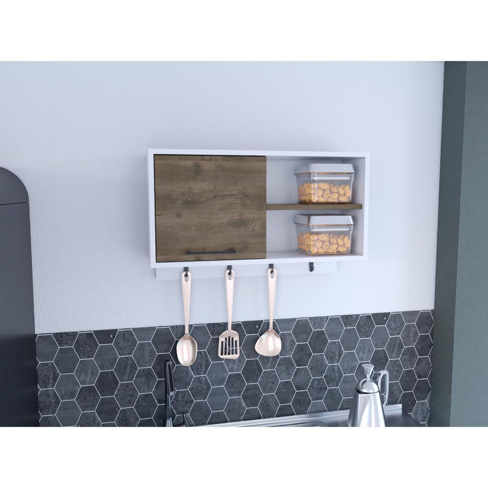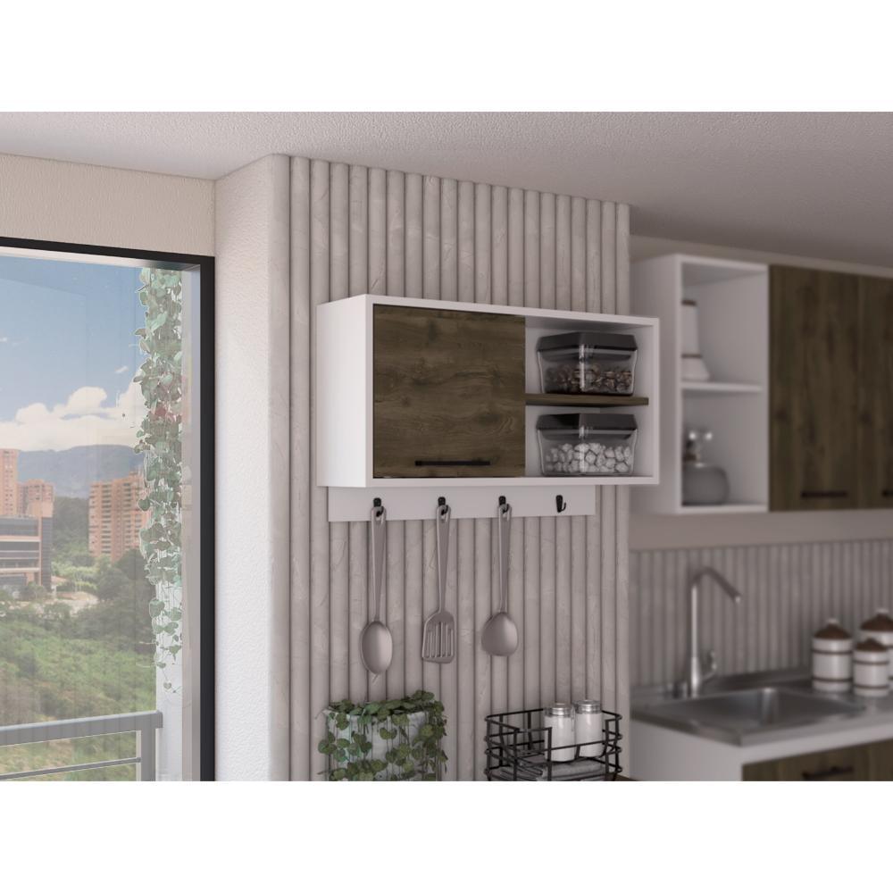 Gabinete Superior Auxiliar Boston, Blanco y Nogal, una puerta batiente