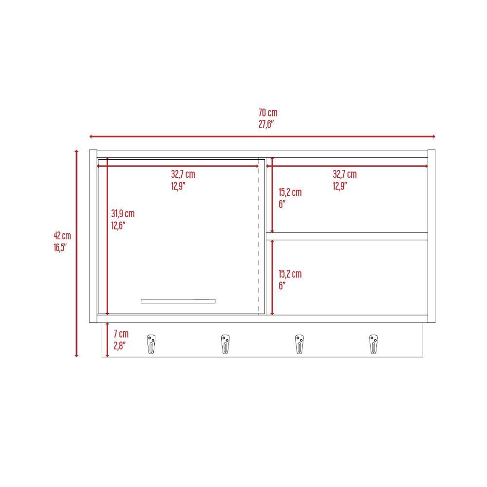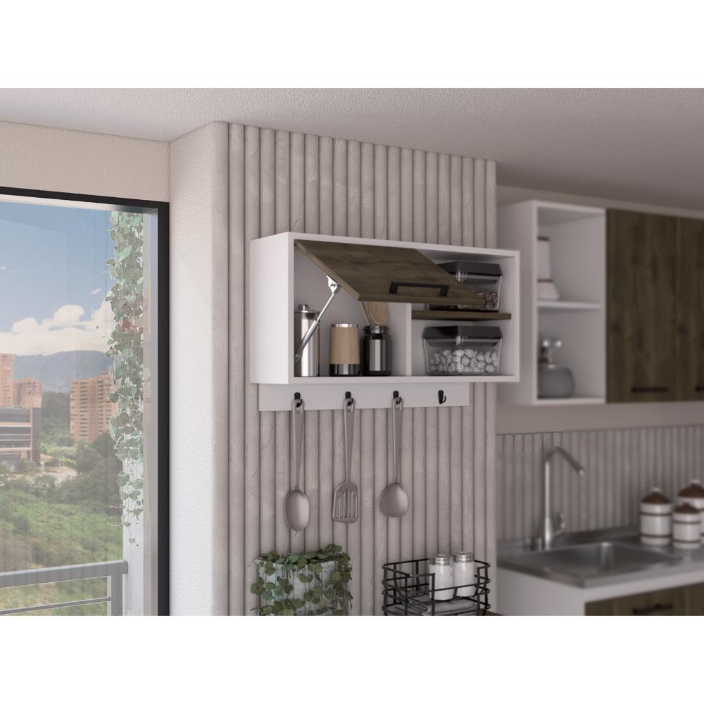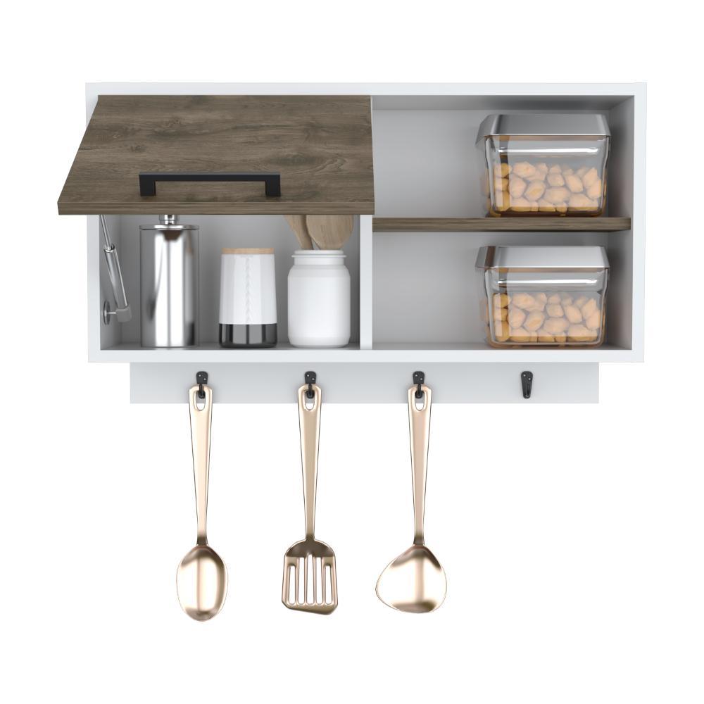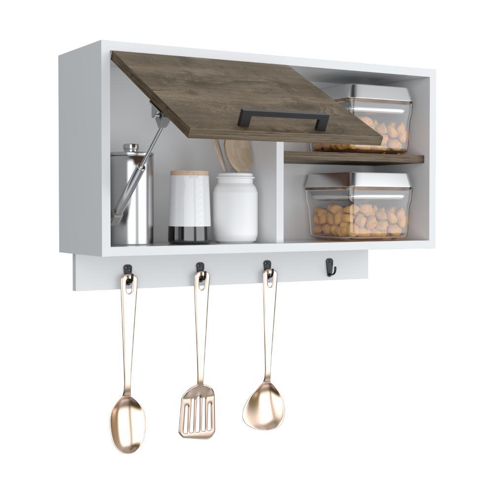 Gabinete Superior Auxiliar Boston, Blanco y Nogal, una puerta batiente