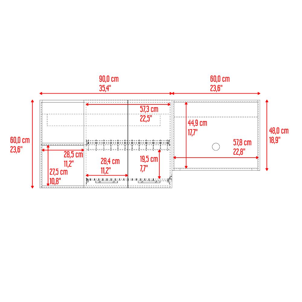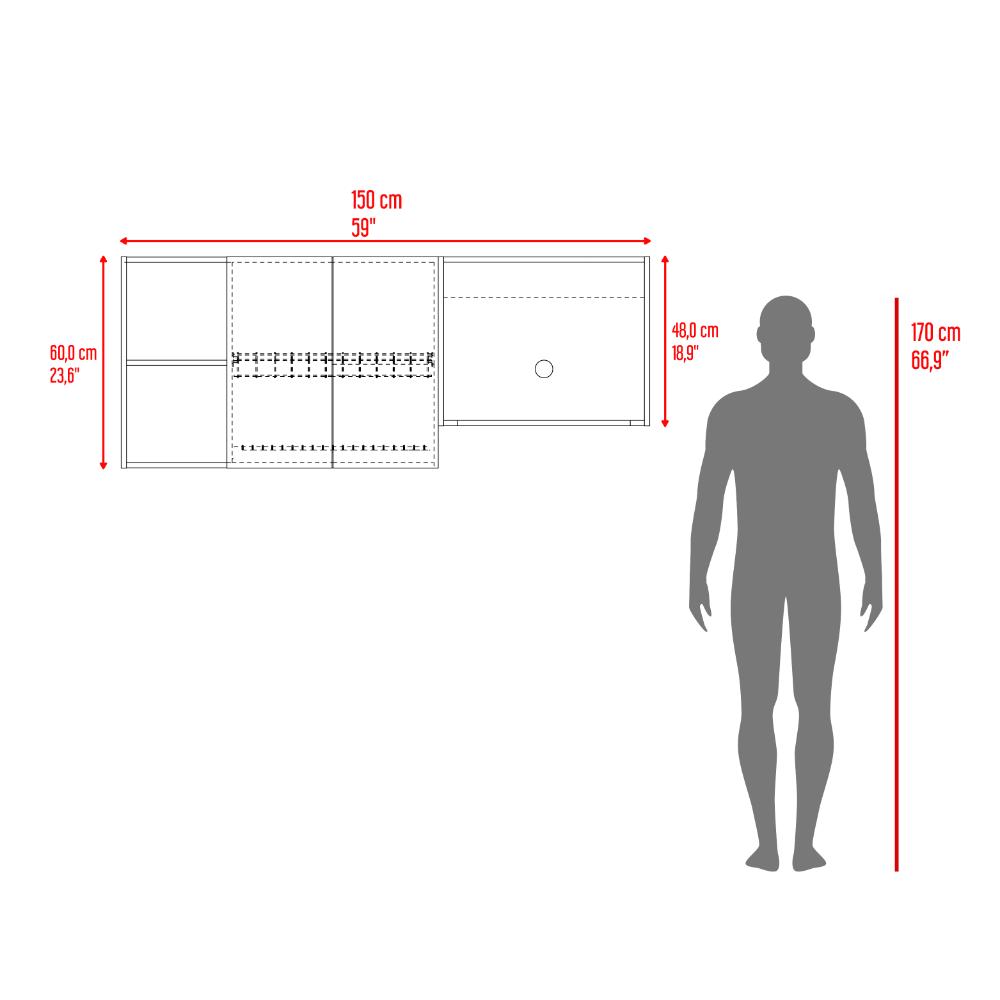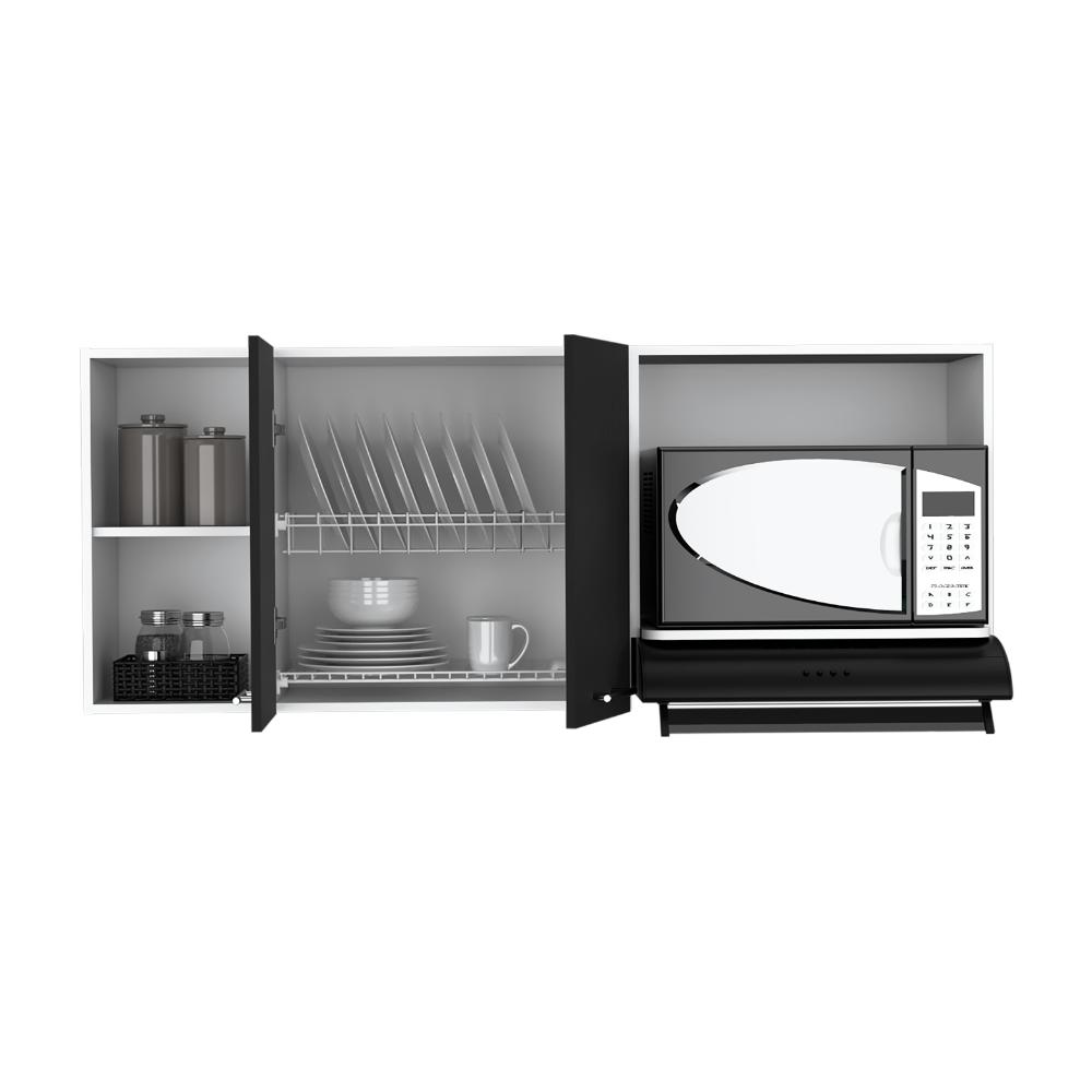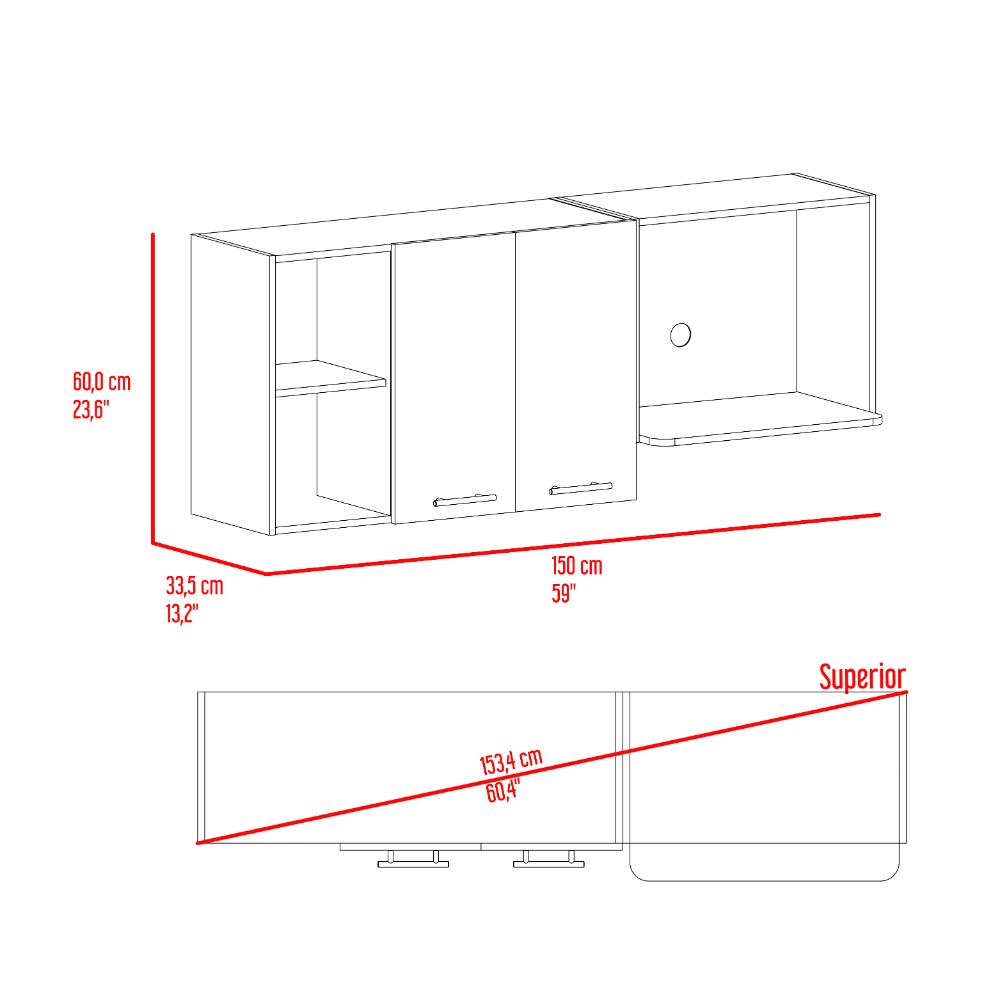 Gabinete Superior Creta, Blanco y Wengue, con Múltiples Entrepaños Para Almacenamiento