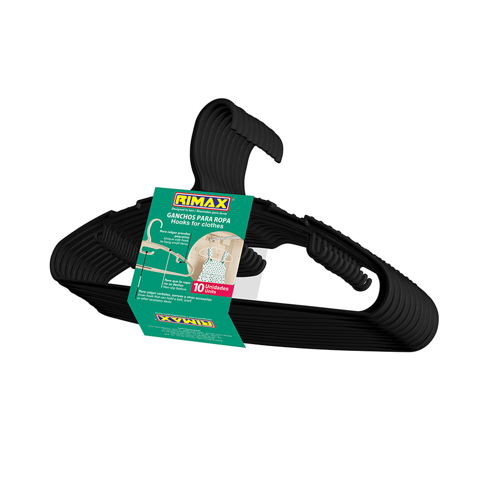 El set de 10 ganchos para ropa Rimax es la solución perfecta para organizar y maximizar tu espacio de almacenamiento. Estos ganchos versátiles y duraderos te permiten colgar prendas de manera ordenada, evitando arrugas y manteniendo tu armario organizado. Fabricados con materiales de alta calidad, estos ganchos son resistentes y mantienen tus prendas seguras. Su diseño compacto y funcional los hace ideales para guardar abrigos, trajes, camisas y más. Con este set económico de 10 unidades, podrás optimizar el espacio de tu armario de manera conveniente y eficiente. ¡Mantén tu ropa impecable y bien colgada con estos prácticos ganchos de Rimax!
