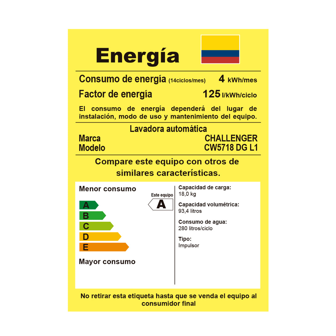 Lavadora automática Challenger modelo CW 5718 DG L1 es la solución ideal para quienes buscan eficiencia y comodidad en su hogar. Con una capacidad de 18 kg, su diseño de carga superior permite una fácil carga y descarga de la ropa. Su panel digital intuitivo facilita la selección de programas, mientras que la función de comienzo diferido proporciona flexibilidad para adaptarse a tu horario.