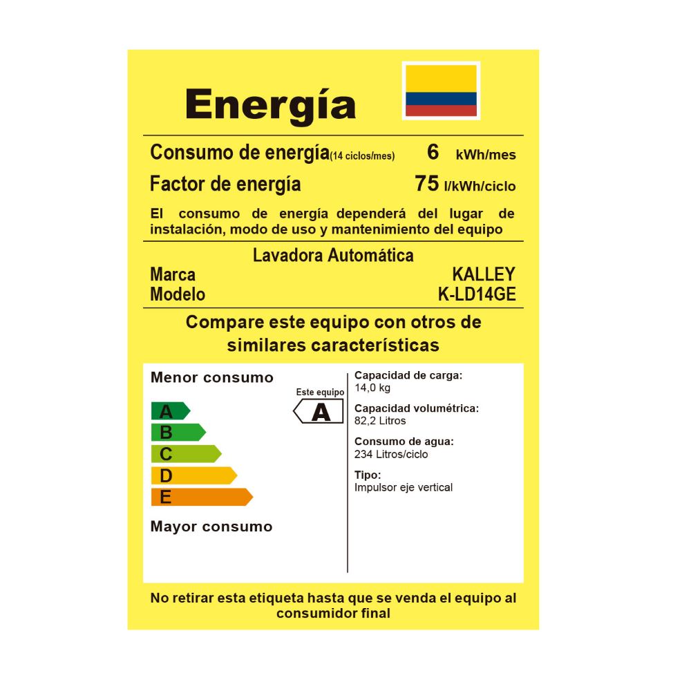 Lavadora Kalley Carga Superior 14 Kilos K-Ld14Ge, Color Gris