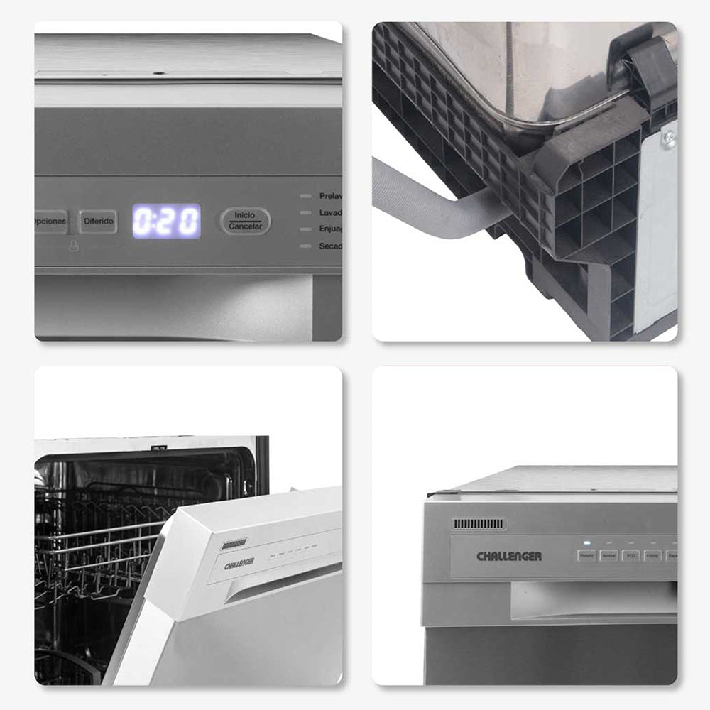 Además, cuenta con recipientes para cubiertos, lo que facilita la organización y optimiza el espacio interior. Con el Lavavajillas Challenger, disfrutar de una cocina limpia y ordenada es más fácil que nunca, permitiéndote dedicar más tiempo a lo que realmente importa.