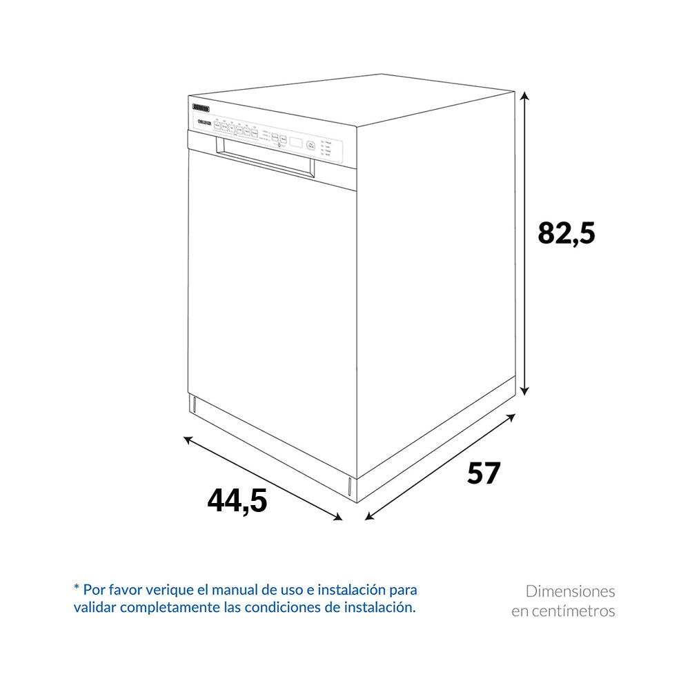 Acabado : Acero Inox. / Lavavajillas para empotrar : si / Alimentación : 120 Va.c 60 Hz / Potencia de consumo máximo : 876 W / Corriente Máxima : 7,3 A / 6 Programas de lavado : Pesado, Normal, Eco, Cristal, Rápido ,Enjuague / Interior en acero inoxidable : SI / Indicador de error : SI / Entrada de agua : Fría o Caliente / Canastas (2) : Inferior y superior / Bloqueo de funciones : SI / Display : SI / Indicador tiempo ciclo : Si / Funciones extra : Esterilizar, Alta temperatura ,Secado con calor ,Diferido