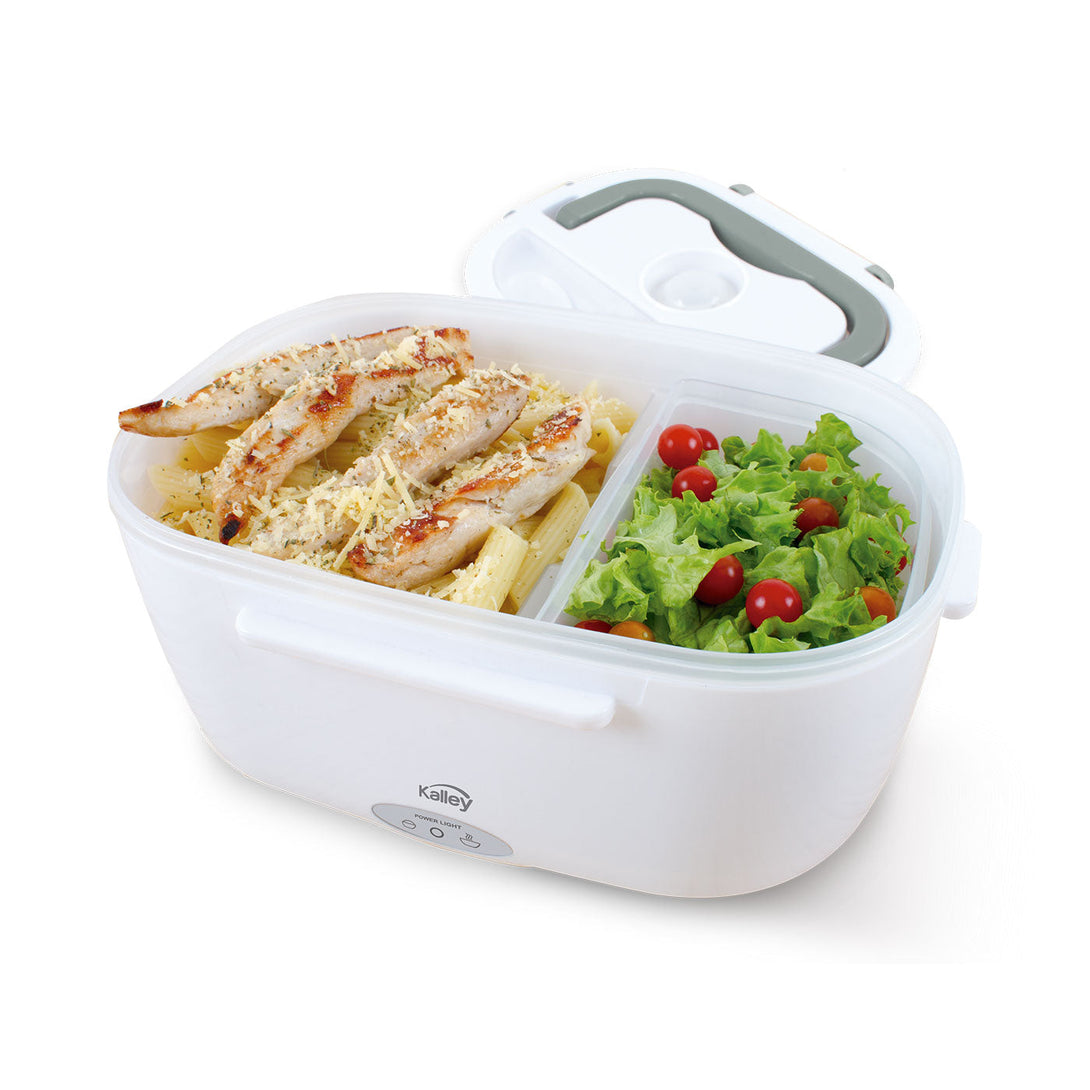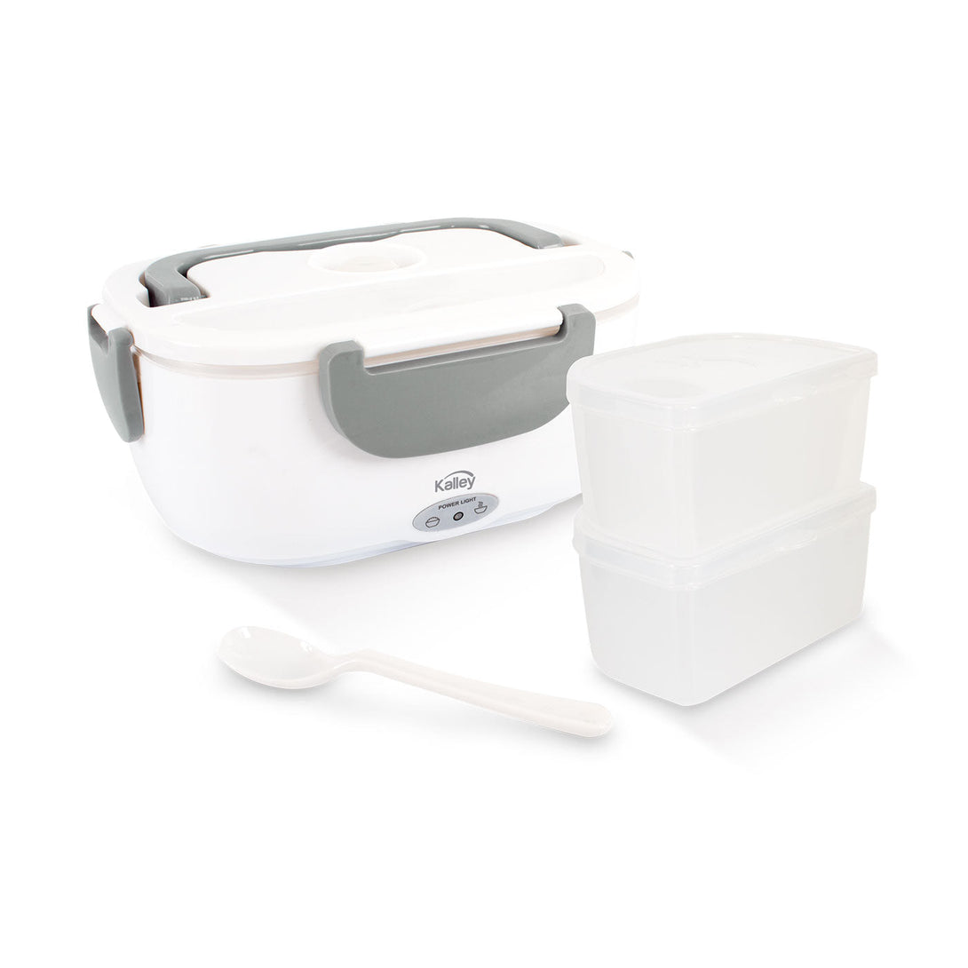 Ahora puedes llevar tus alimentos contigo a donde sea que vayas y calentarlos de forma inmediata, fácil y cómoda. La lonchera eléctrica Kalley K-MLE60G2 cuenta con una capacidad de 1.1 litros e incluye 2 recipientes y 1 cuchara para llevar tus preparaciones. El nuevo recipiente de cierre hermético evita derrames de todo tipo de alimentos! Gracias a su diseño puedes guardarla fácilmente y siempre con la seguridad que tus alimentos llegarán en las mejores condiciones. Está hecha en plástico libre de BPA y sus piezas son removibles para una mejor limpieza.