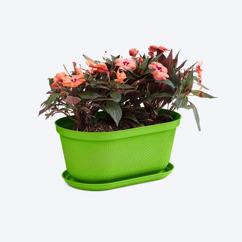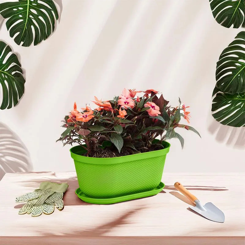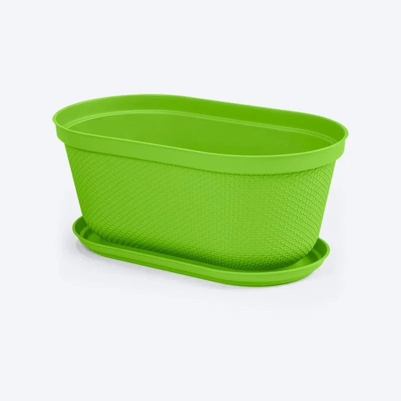 Matera Ovalada Rafia 40 Cm con Plato Verde Lima