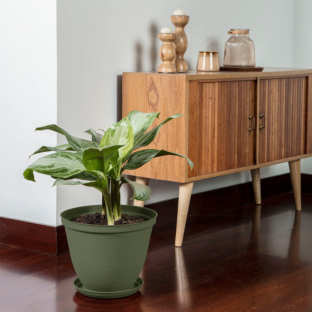 La Matera Redonda Rafia 30 cm con Plato es ideal para resaltar tus plantas con un estilo natural y elegante. Fabricada con materiales duraderos y diseñada para imitar la textura de la rafia, esta matera aporta un toque estético a cualquier ambiente. Incluye un plato a juego que ayuda a evitar derrames, manteniendo tus superficies limpias. Perfecta para uso en interiores y exteriores.