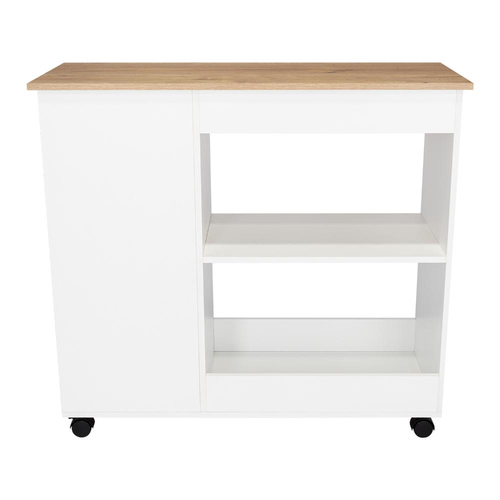 Mesa Auxiliar de Cocina Coralyn, Blanco y Café Claro, con tres entrepaños y rodachines