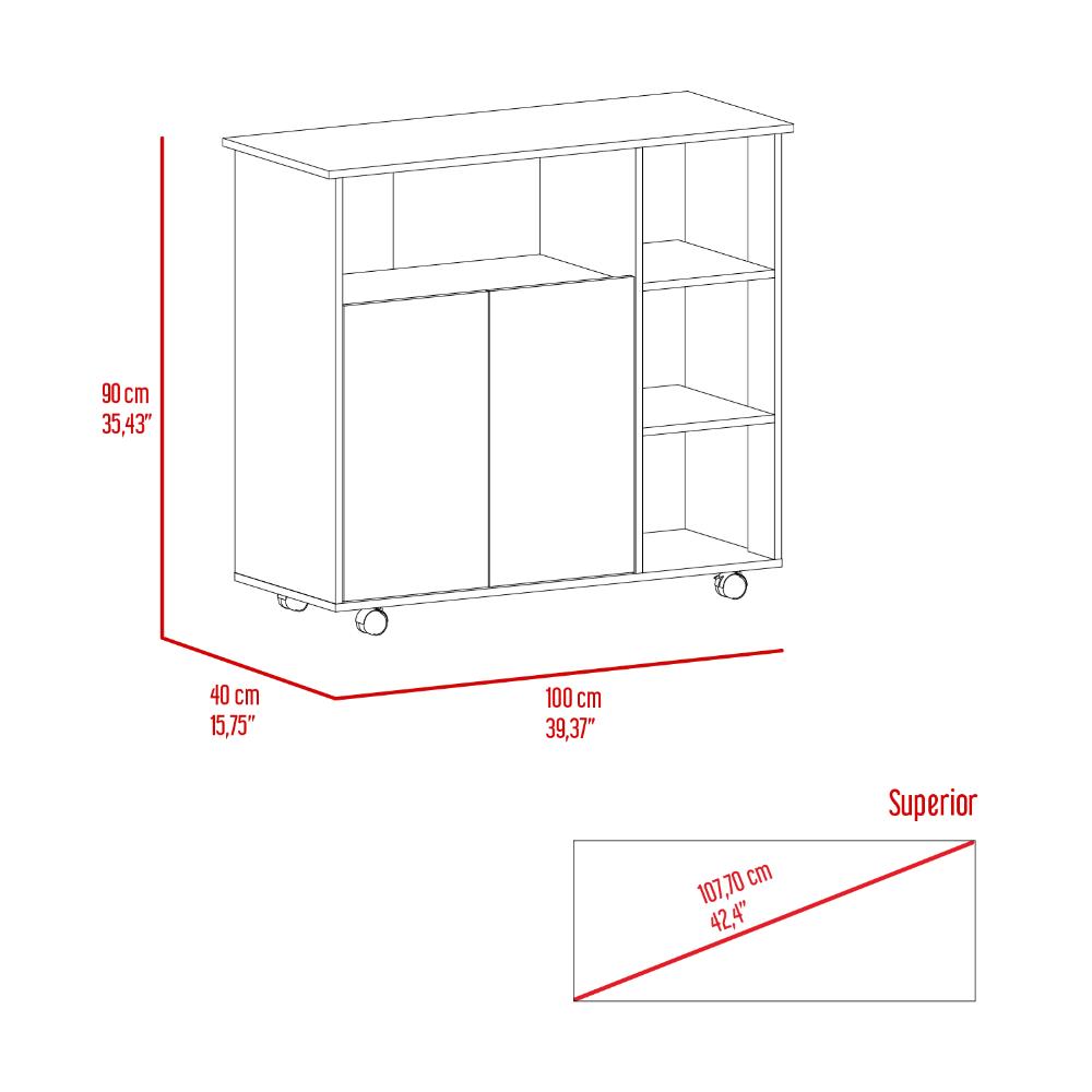 Mesa Auxiliar de Cocina Coralyn, Blanco y Café Claro, con tres entrepaños y rodachines