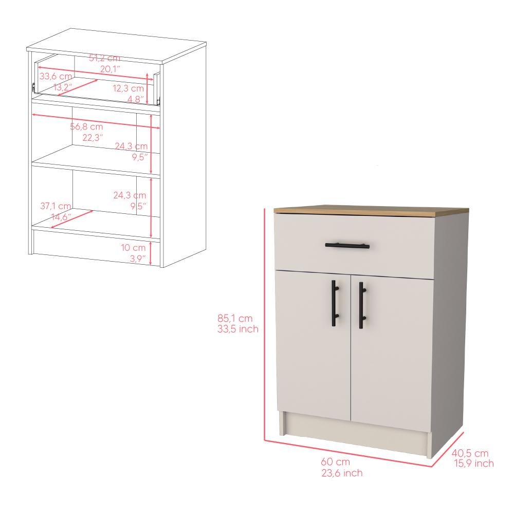 Mesa Auxiliar de Cocina Mayorca, Capri y Fresno Europeo, con espacio para guardar insumos ZF