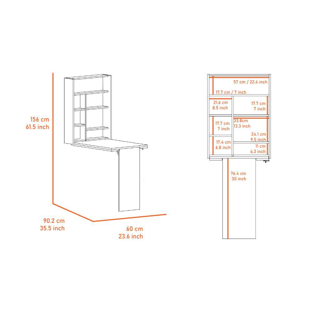 Mesa para empotrar en la pared con superficie plegable para ahorrar espacio, entrepaños para ubicar múltiples objetos, espacios para almacenamiento.