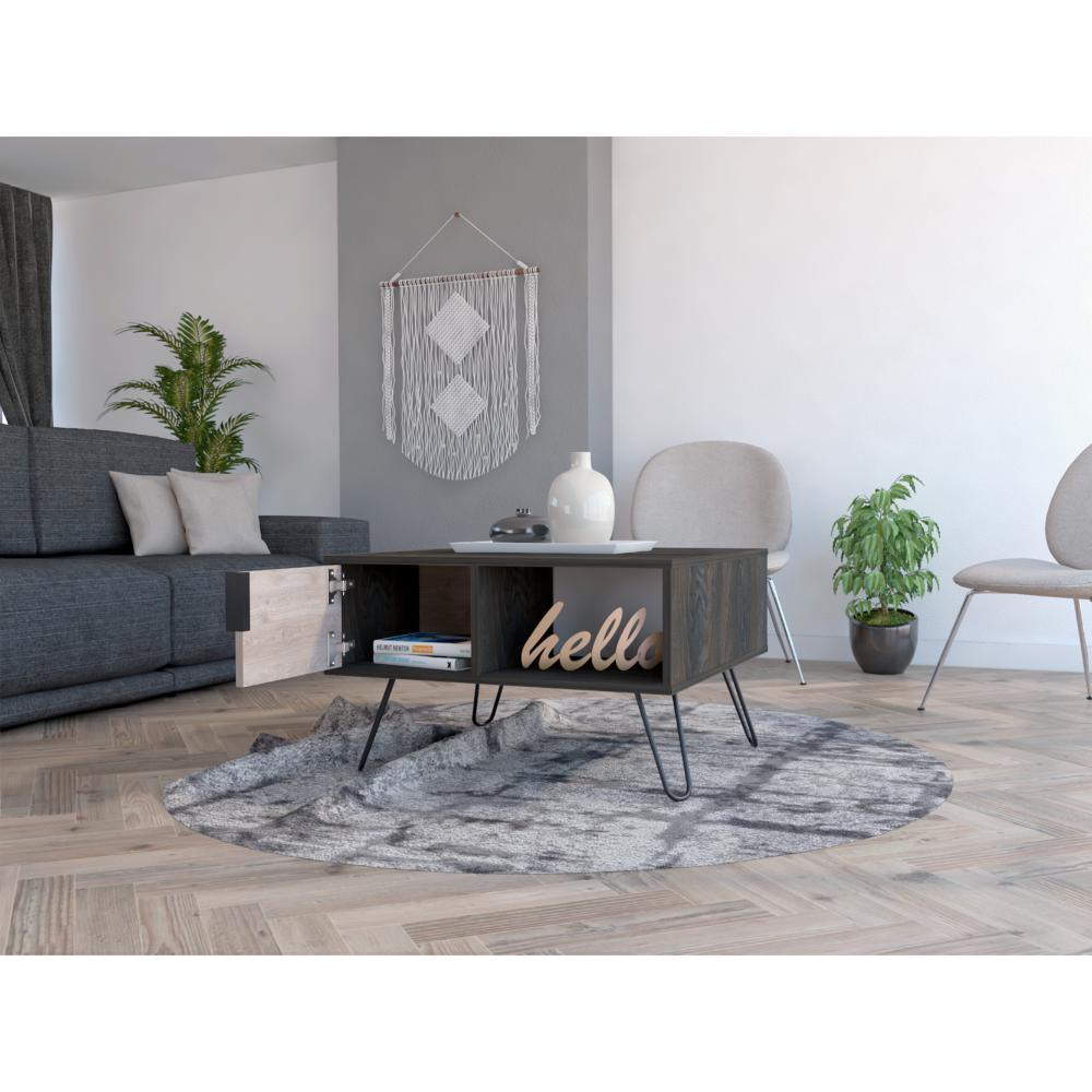 Mesa de Centro con amplios espacios para ubicar libros y multiples objetos, dos puertas, patas en acero