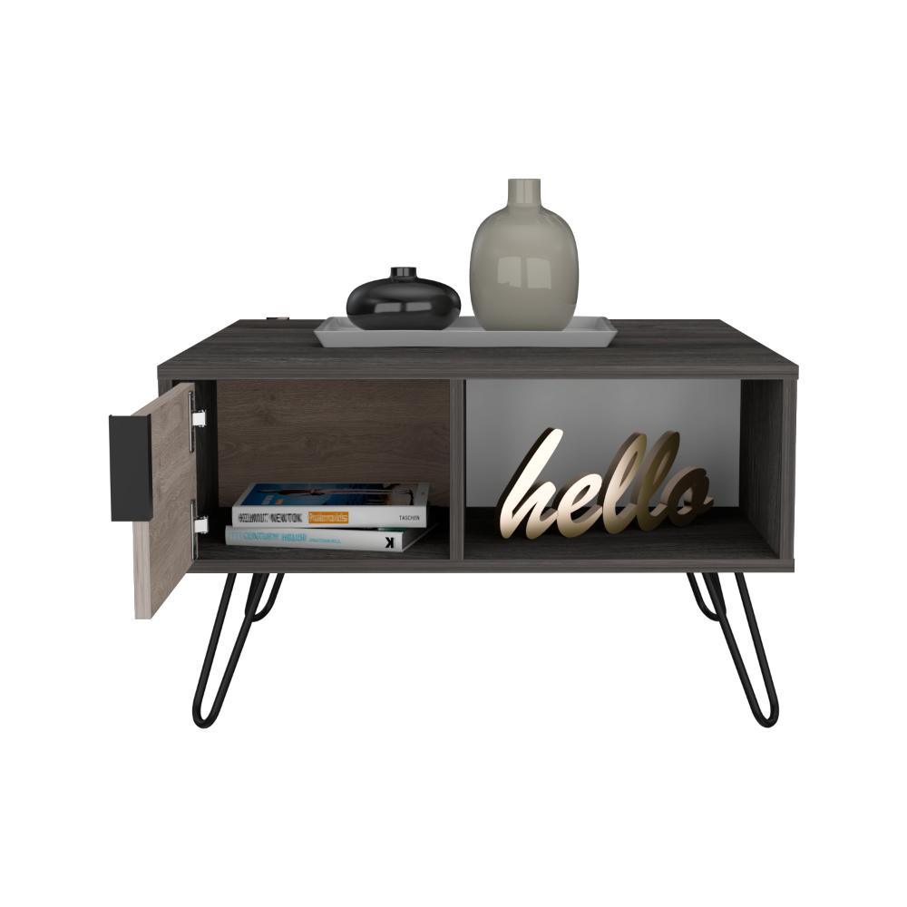 Mesa de Centro Real, Blanco, Humo y Carbón, con amplios espacios para ubicar libros
