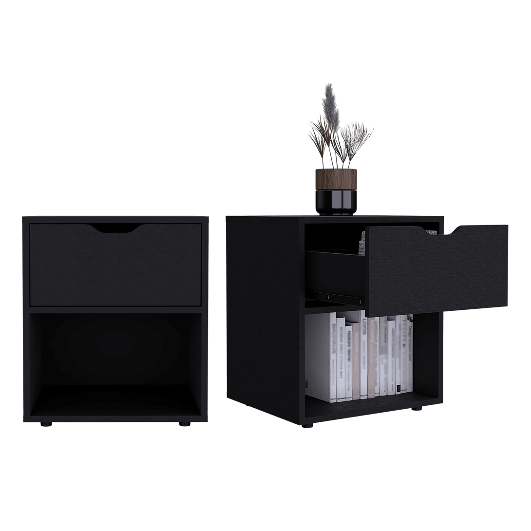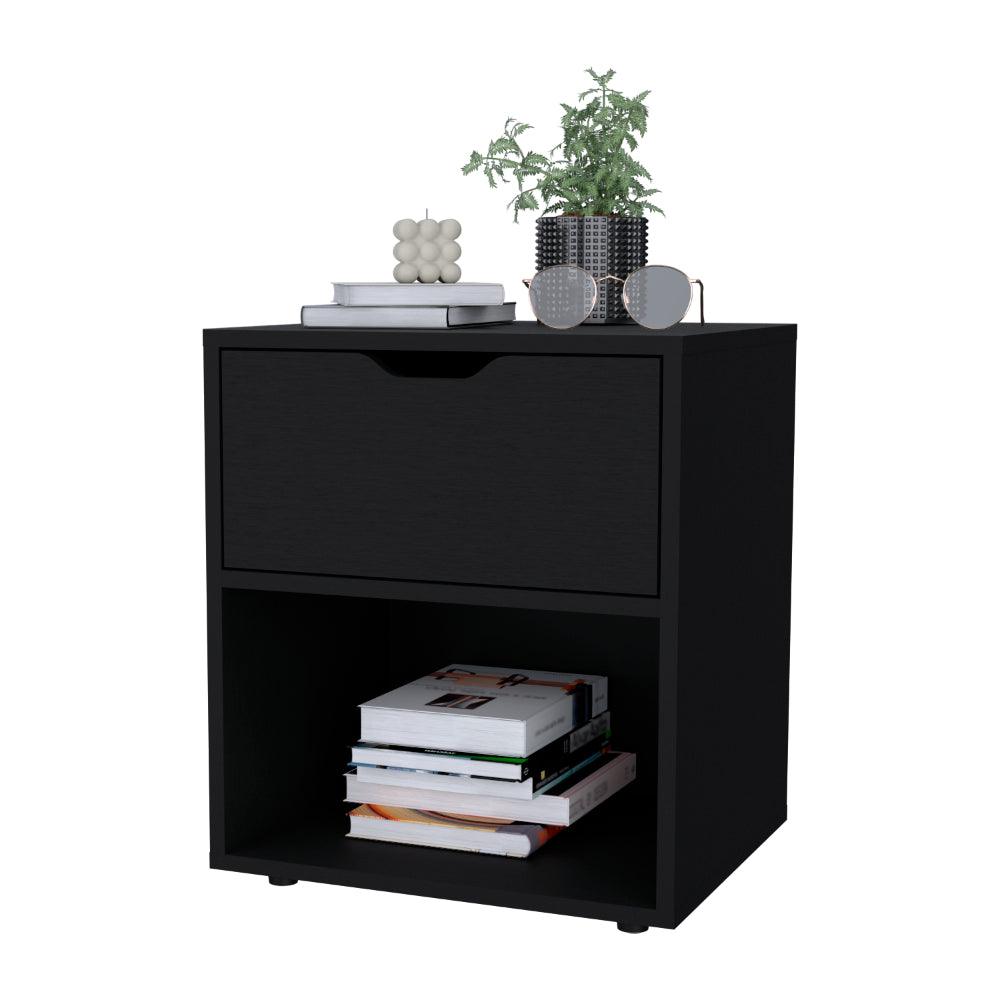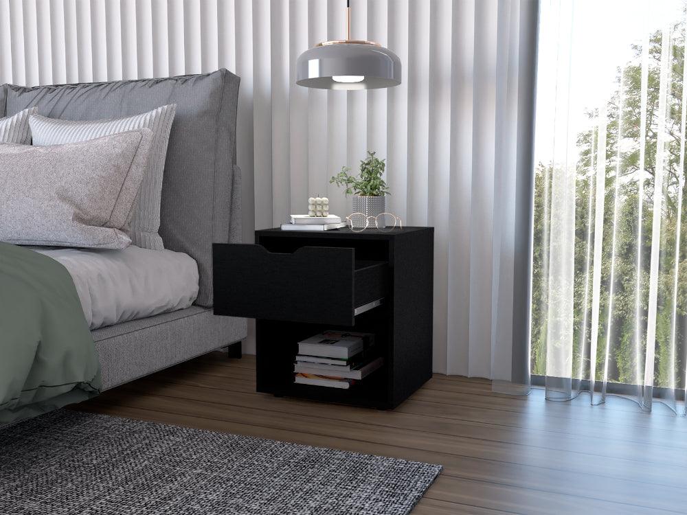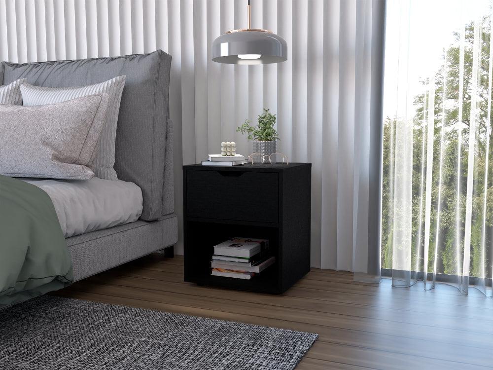 Mesa de Noche, con un cajón, espacio para colocar objetos decorativos, deslizadores pasticos
