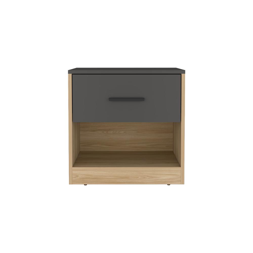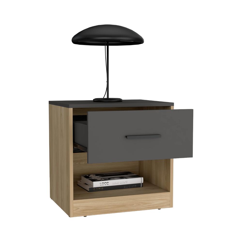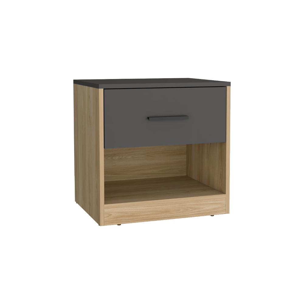 Mesa de Noche Ader, Plata Oscuro y Fresno Europeo, facil armado e instalación