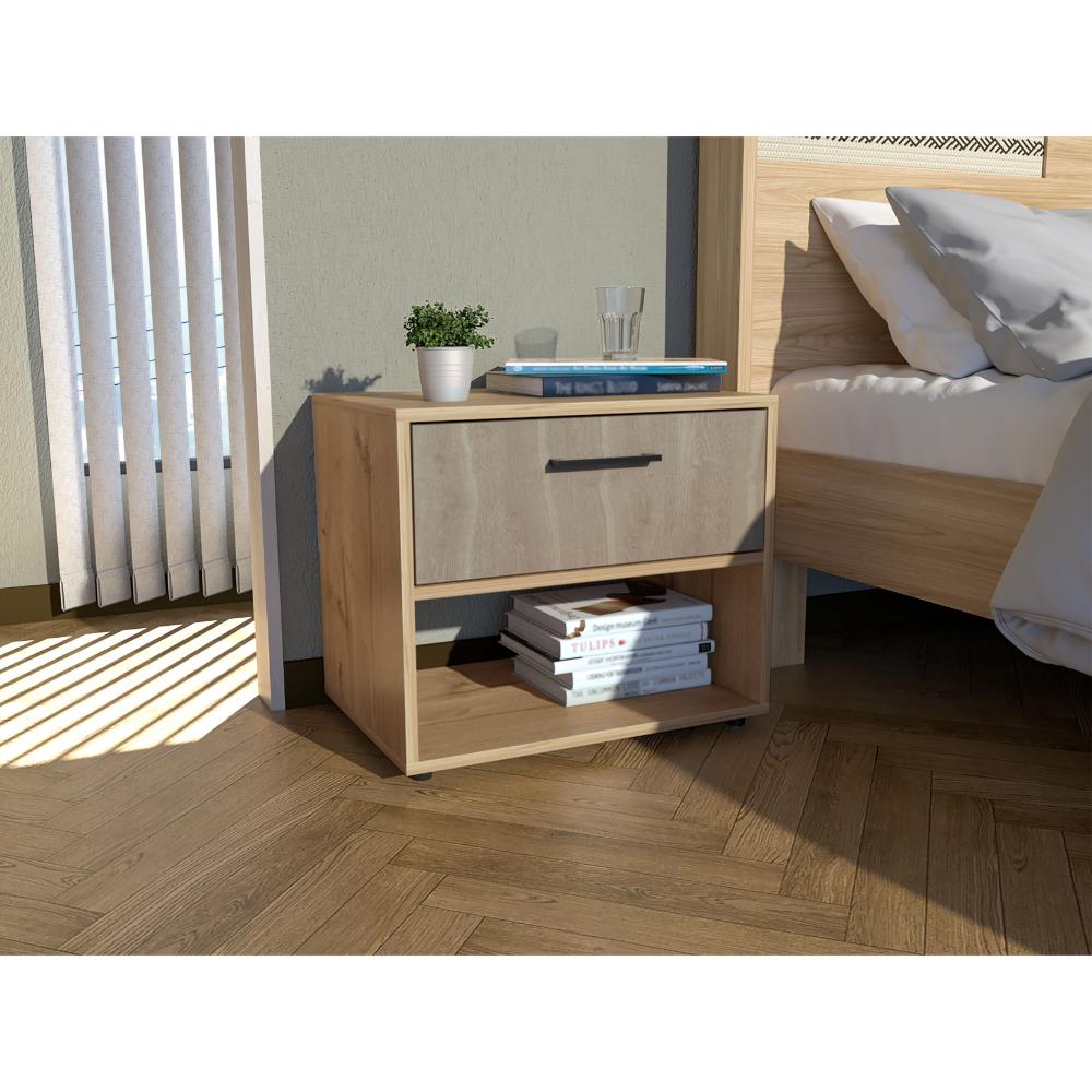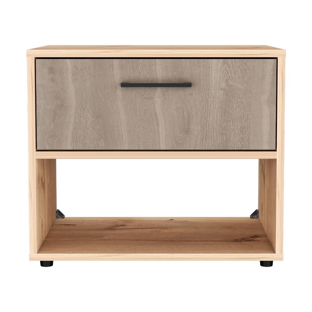 Mesa de Noche Alan, Café Claro y Bardolino, con un cajon y manija metalica