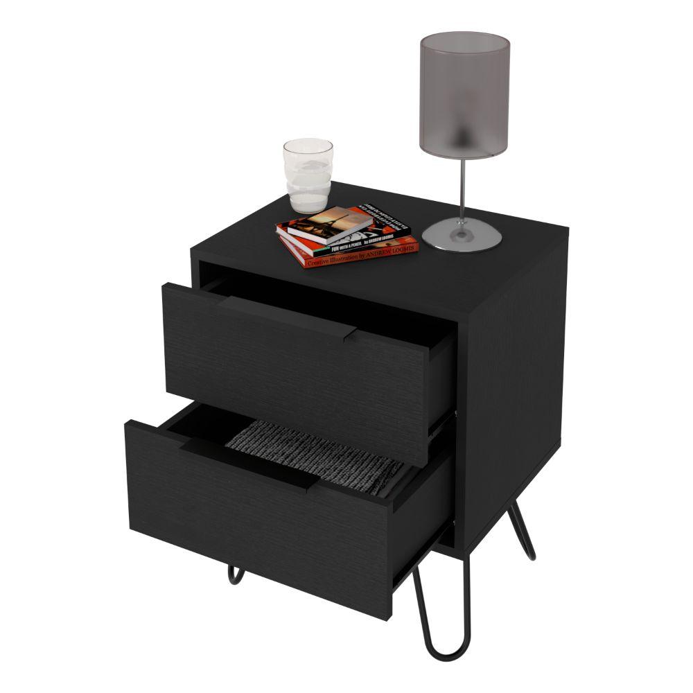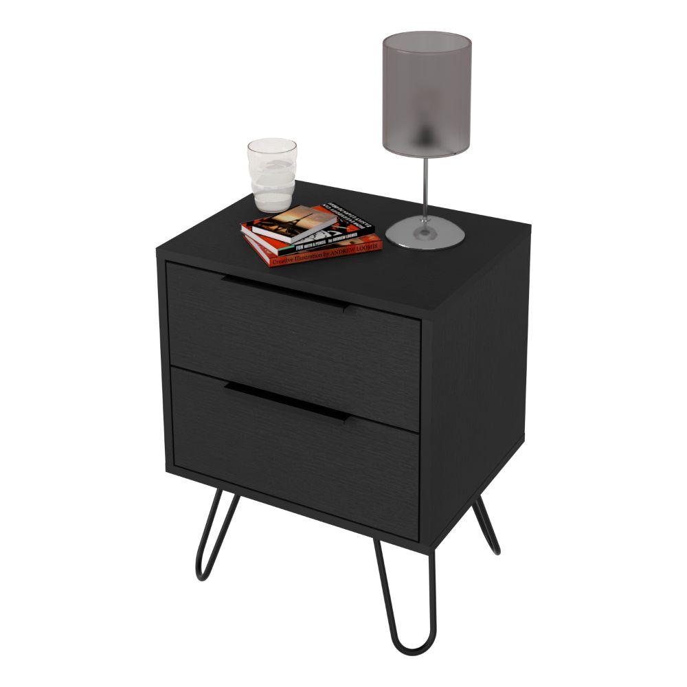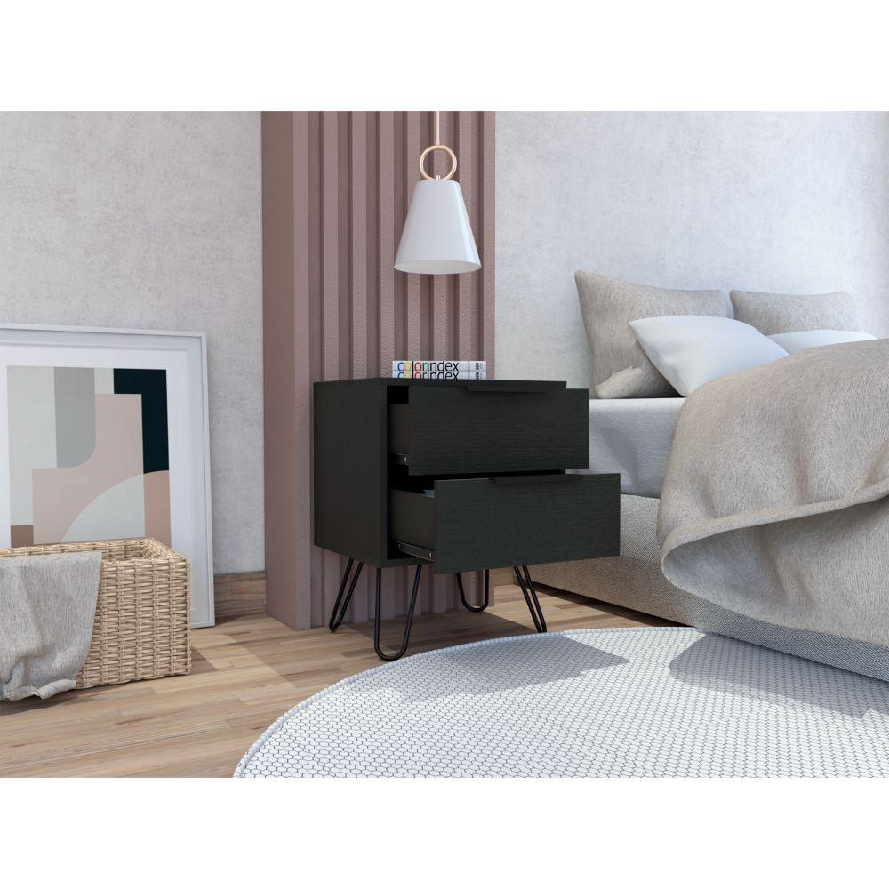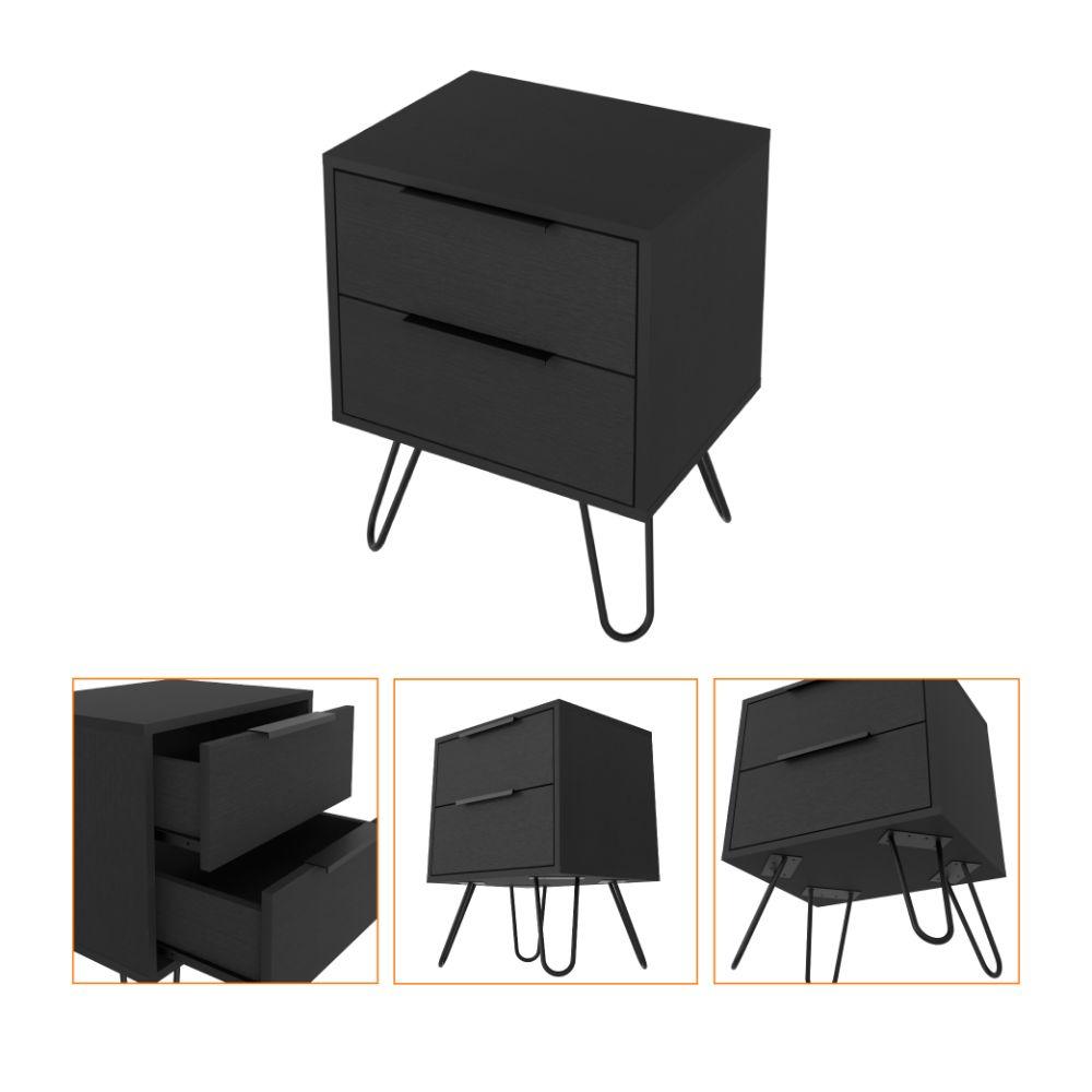 Mesa de Noche, con dos cajoneras, patas metálicas, fácil armado