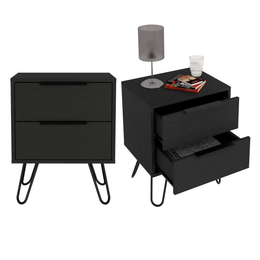 Mesa de Noche, con dos cajoneras, patas metálicas, fácil armado