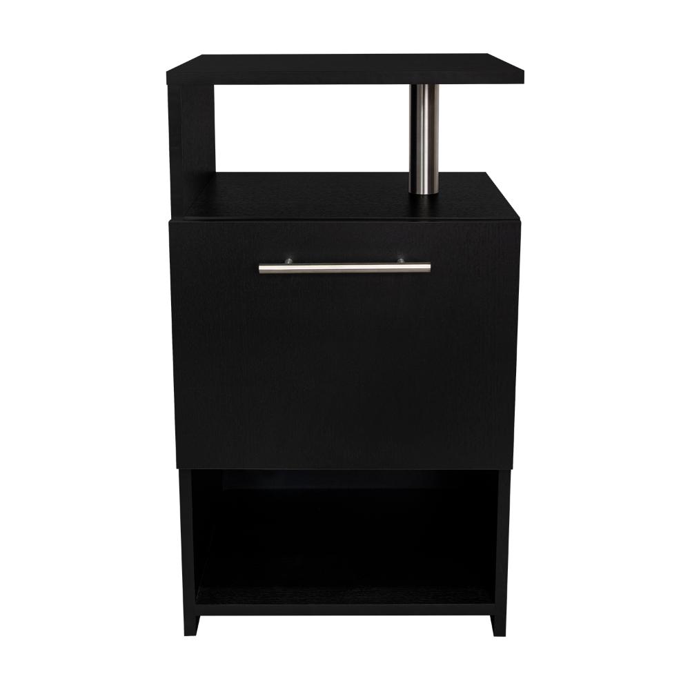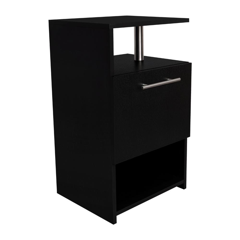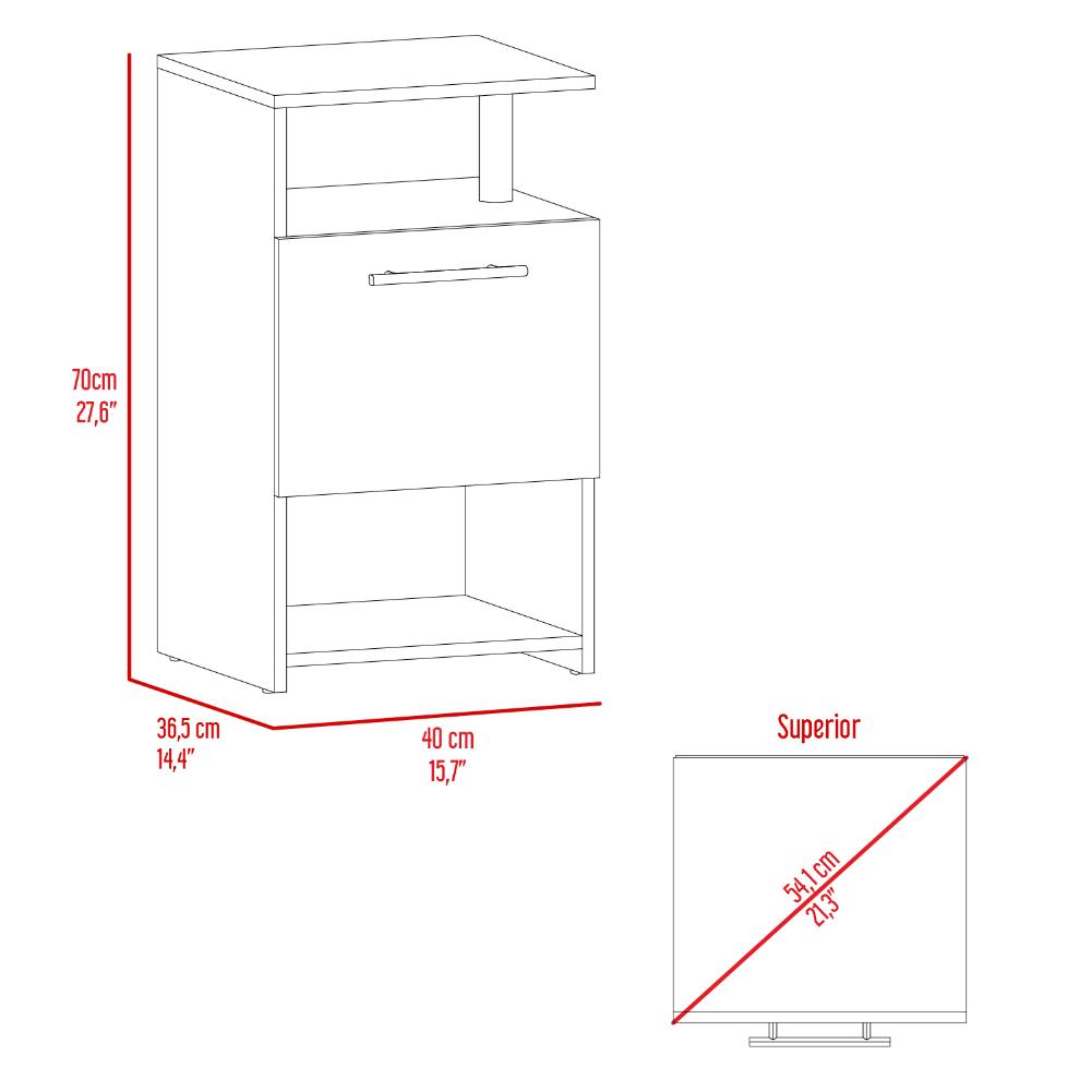 Mesa de Noche, con espacio para colocar objetos decorativos, 1 cajon multiusos, accesorios metalicos, configuración a la derecha o a la izquierda y es de facil instalación