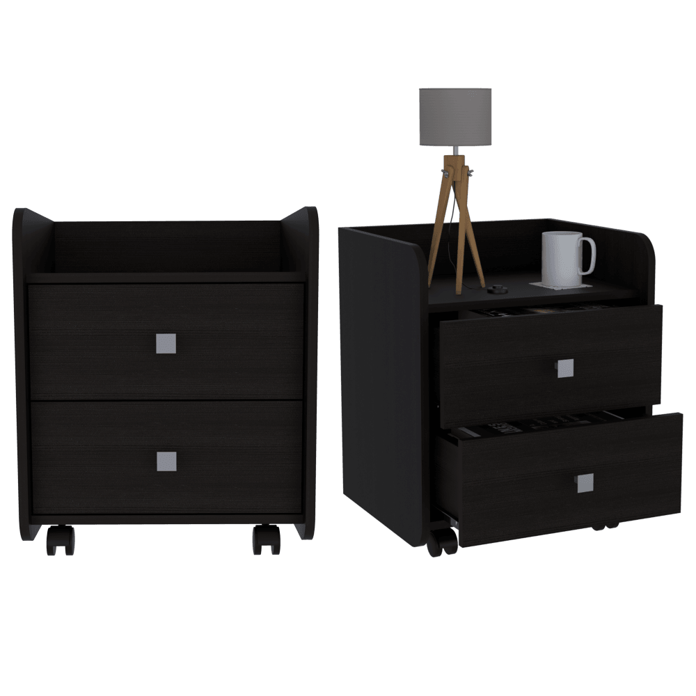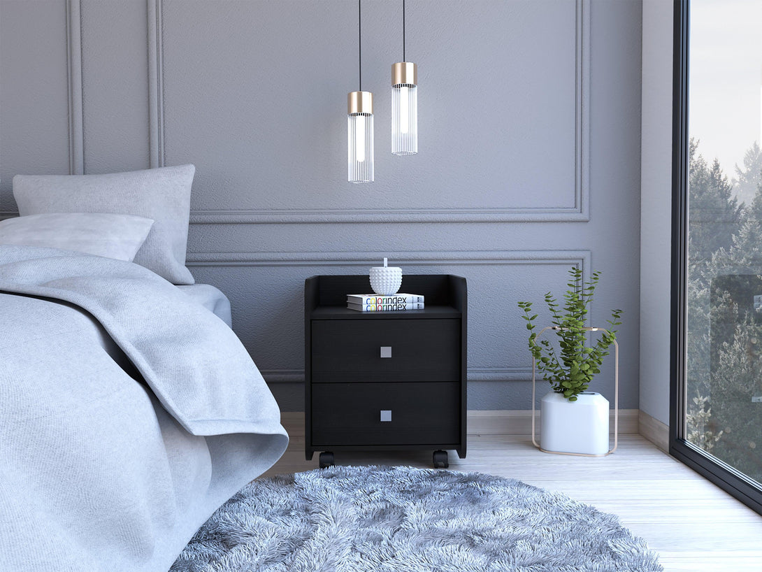 Mesa de Noche Amertto, Wengue, con Dos Cajones y Rodachinas ZF X2