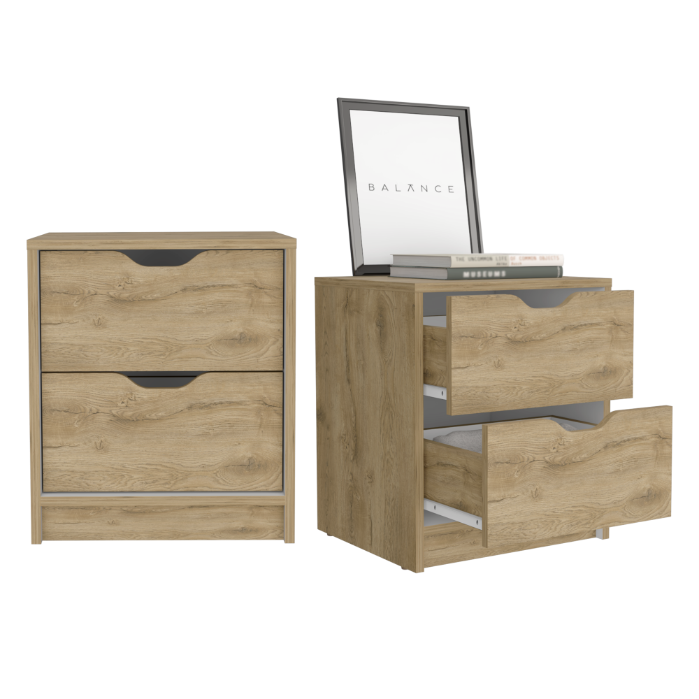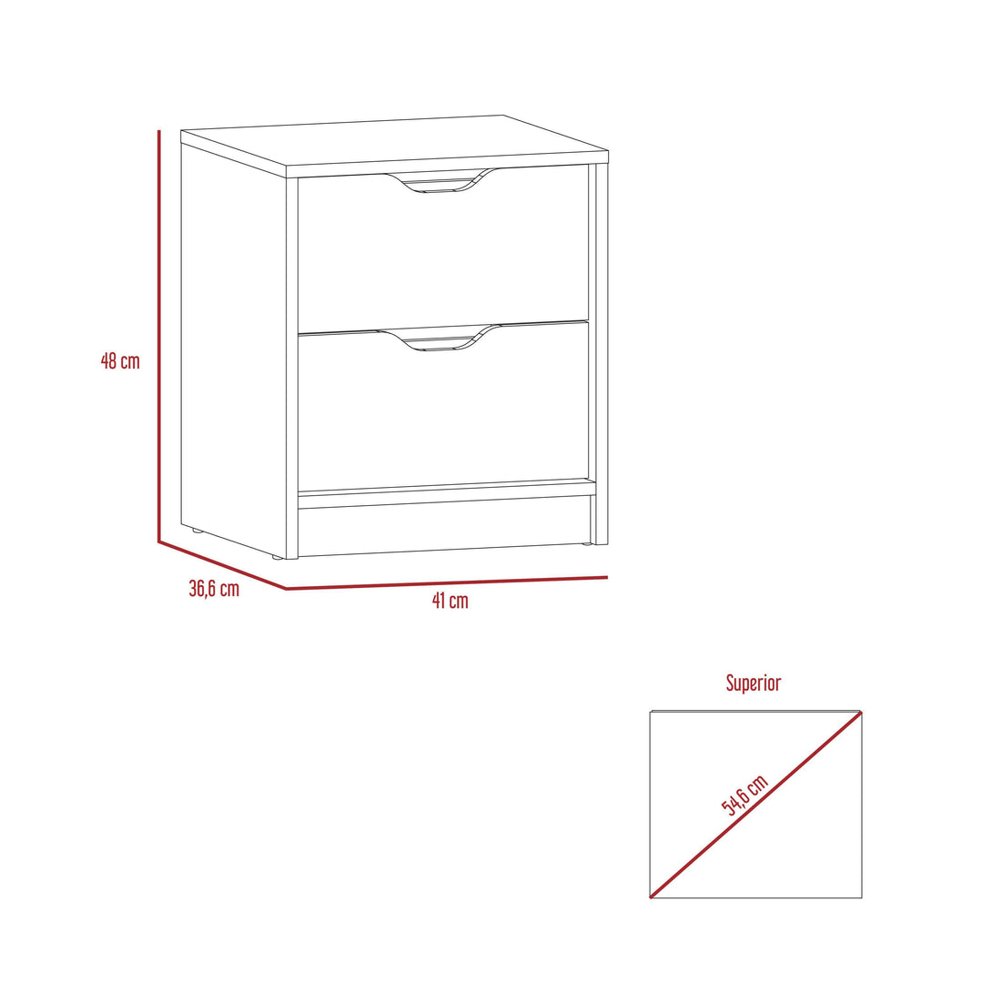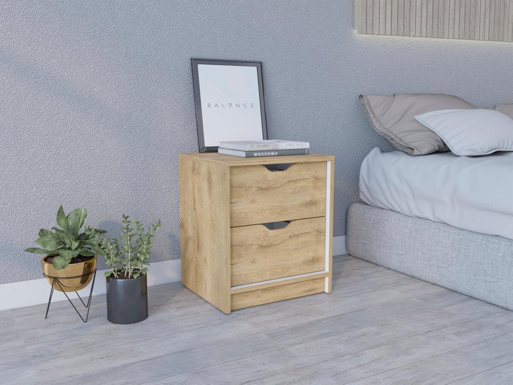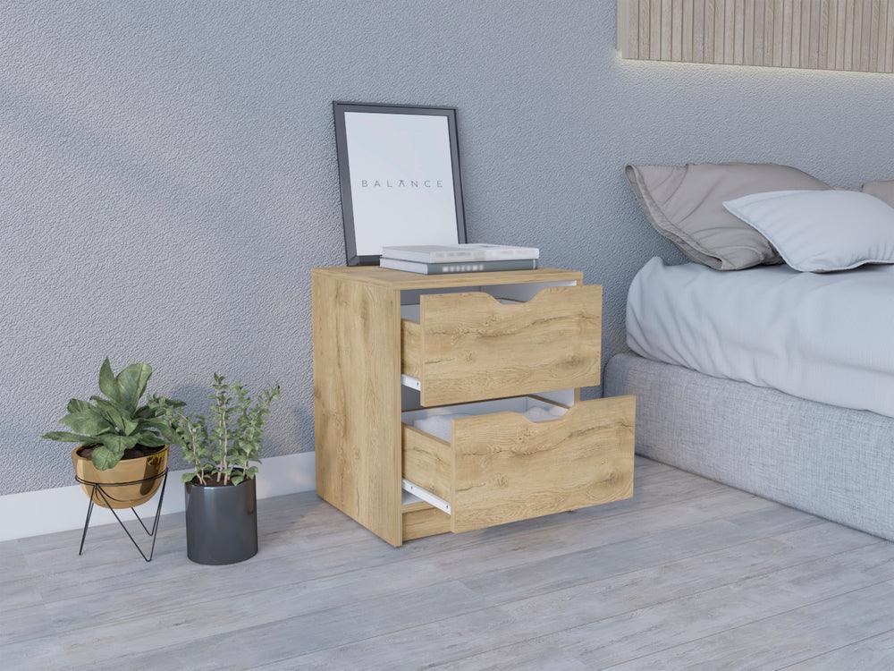 Mesa de Noche, Brasilia, Macadamia, con Dos Cajones Deslizables X2