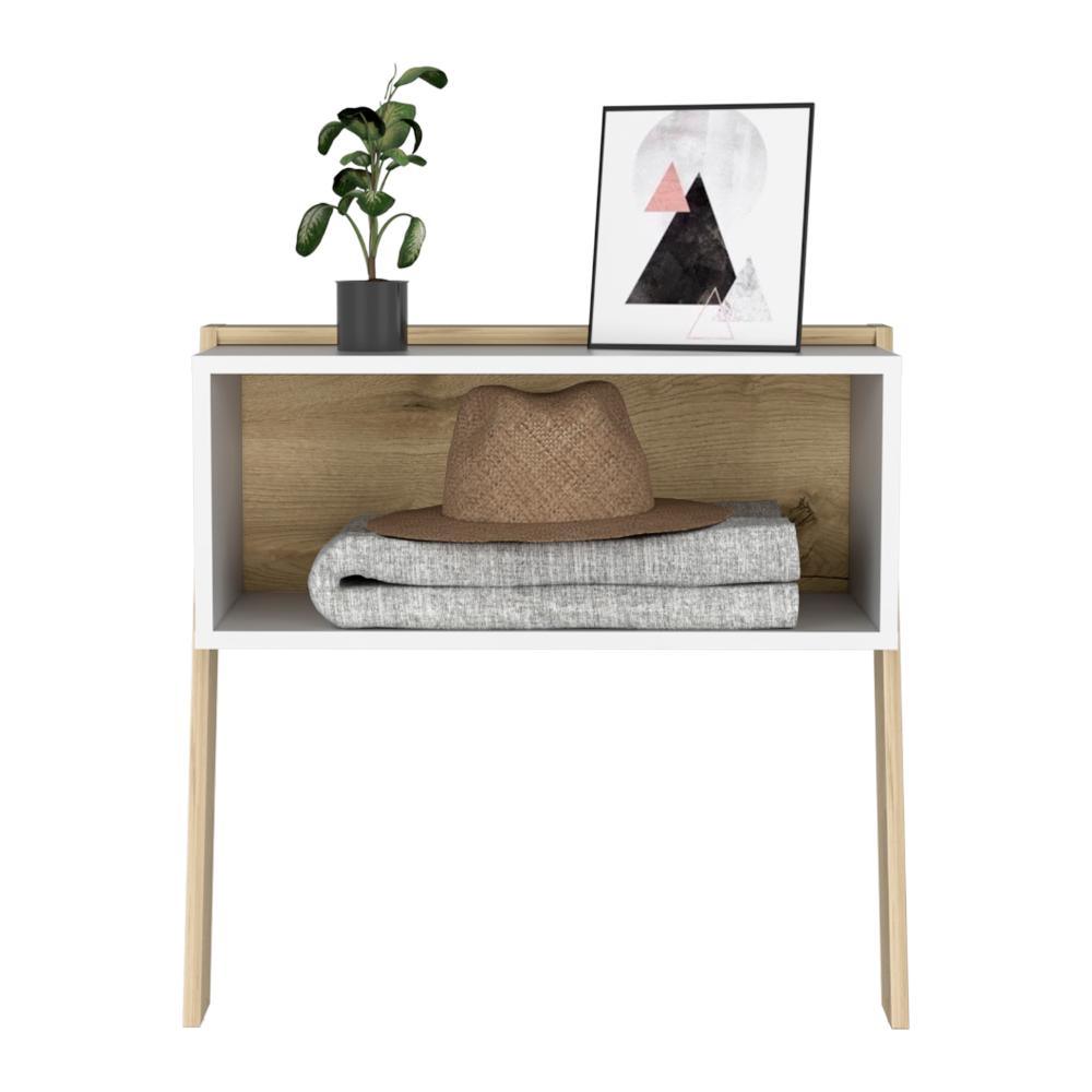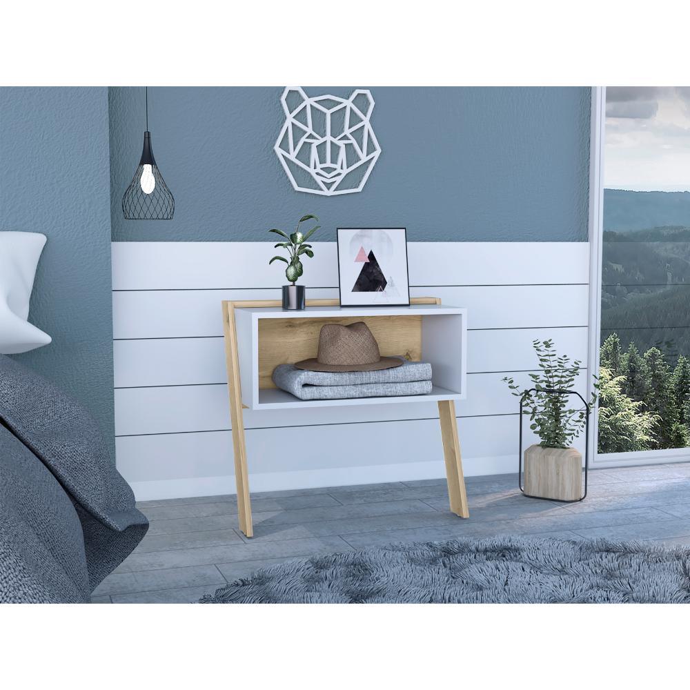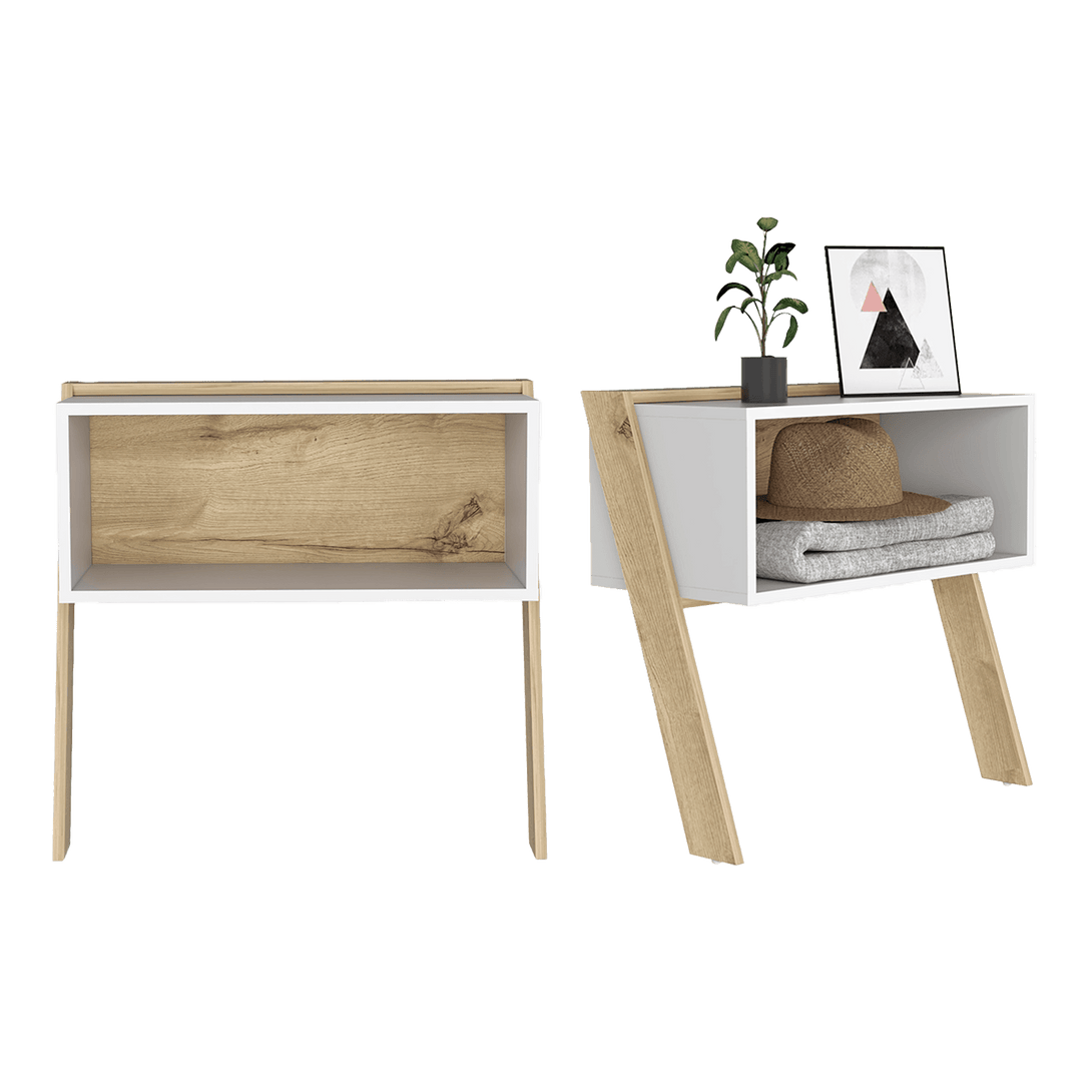 Mesa de Noche Brema, Café Claro y Blanco Nevado, con Dos Patas y Diseño Moderno ZF X2