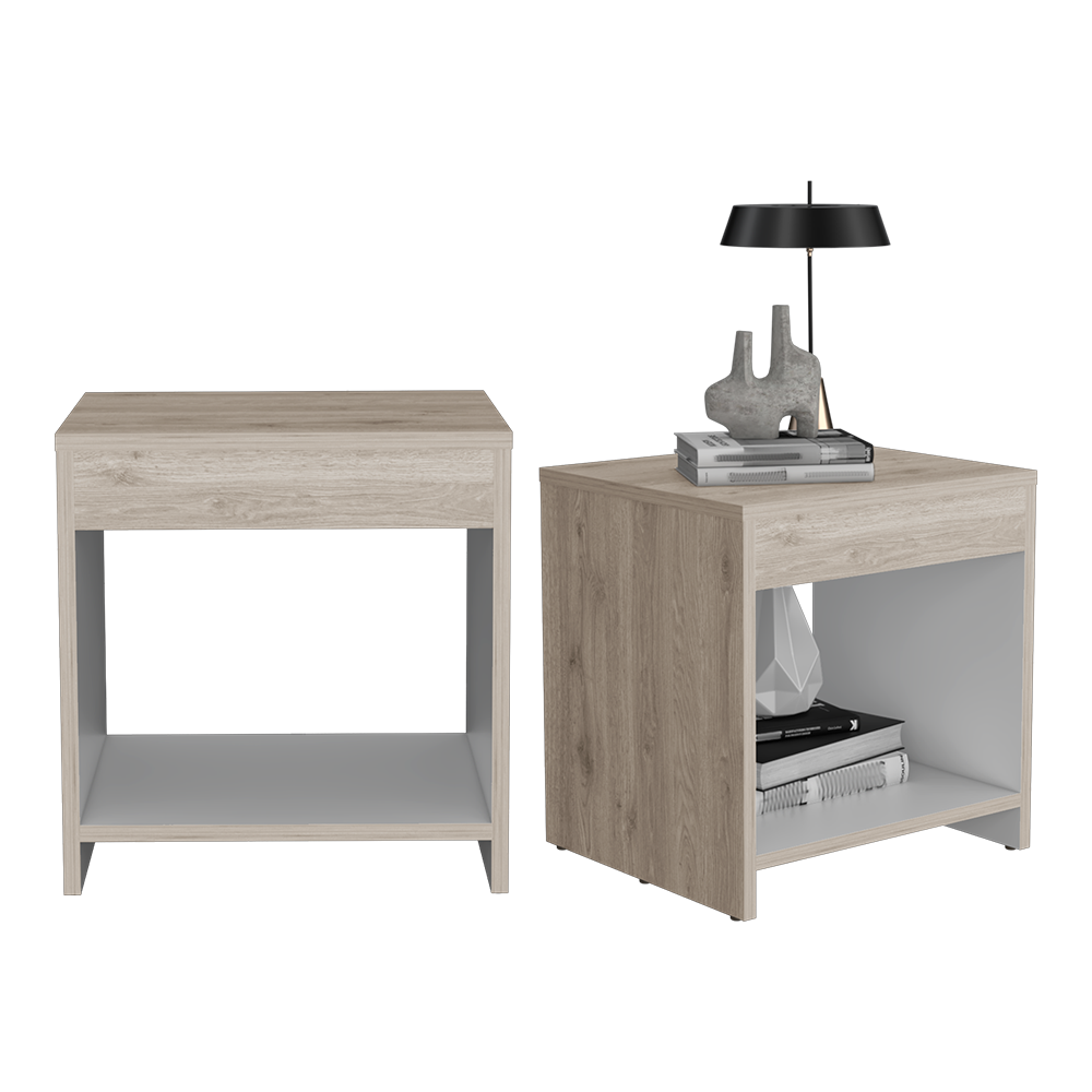 Mesa de Noche Crotam, Humo y Blanco, con diseño moderno X2